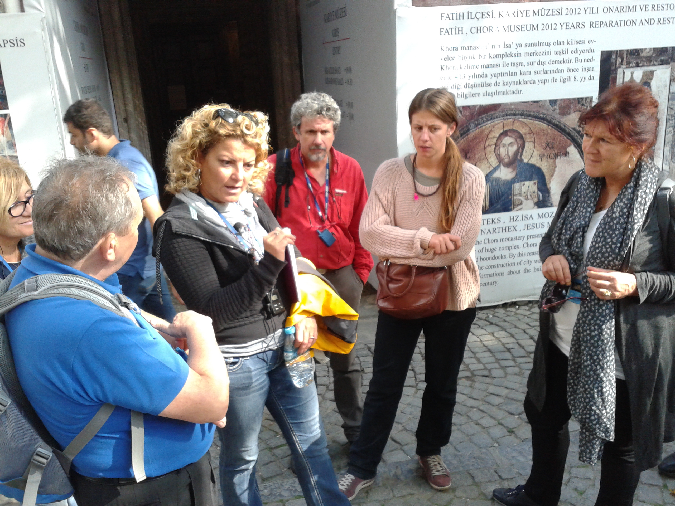 Il pomeriggio è dedicato invece ad una zona della città poco frequentata dai turisti, sulla sponda sudovest del Corno d’Oro. Passando dal quartiere di Fatih, raggiungiamo prima di tutto la Chiesa di San Salvatore in Chora. L’edificio attuale fu costruito nell’XI secolo sul sito di un’antica chiesa bizantina, poi in epoca ottomana fu convertito in moschea. I mosaici vennero però solo ricoperti di calce e cemento ed è stato così possibile, nel secolo scorso, riportarli alla luce con un lungo lavoro di restauro. La parte centrale era purtroppo in fase di restauro anche durante la nostra visita, ma i mosaici che abbiamo potuto vedere sono semplicemente straordinari, di una bellezza non inferiore a quelli di Aya Sofya. Uno rappresenta Maria incinta, che è un’immagine rarissima nell’arte sacra.