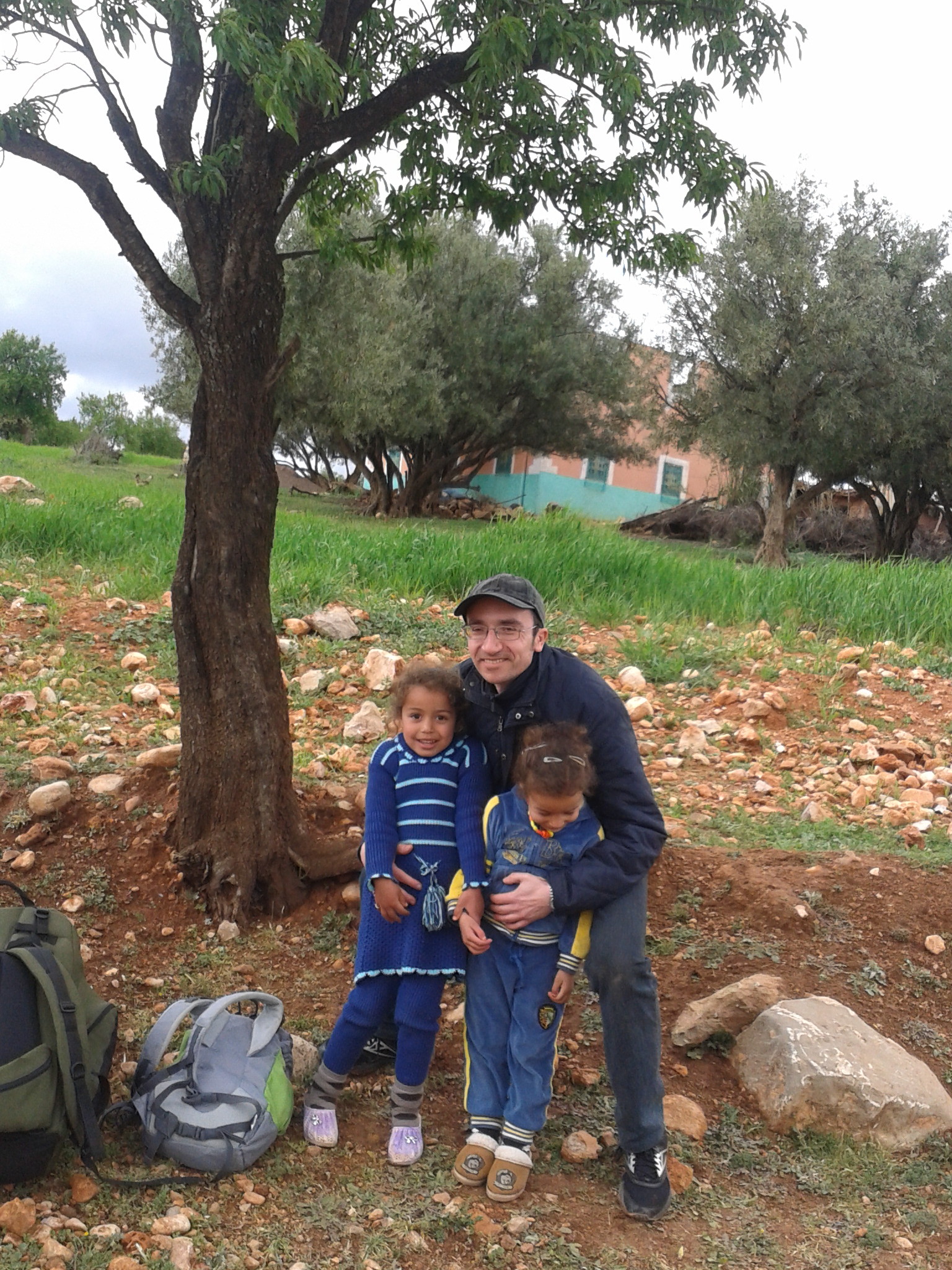 Attraversiamo la strada e imbocchiamo, io sempre a fatica, il sentierino in salita che porta a casa di Salah. La vista delle mie nipotine che mi corrono incontro, però, mi fa passare subito il dolore. “Come sono cresciute” dico a Salah. Lui sorride e fa cenno di sì con la testa, mentre loro mi salutano e mi fanno grandi feste. Purtroppo non posso rispondere a parole, il mio arabo è tuttora molto limitato (una decina di parole). Loro poi, in realtà, prevalentemente parlano tashelhit, la lingua berbera del Marocco centrale, anche se ogni tanto parlano anche in arabo marocchino, non ho mai capito bene con quale criterio, se c’è. Ad ogni modo, cerco di far loro capire, con sorrisi e coccole, che sono anch’io felice di rivederle.