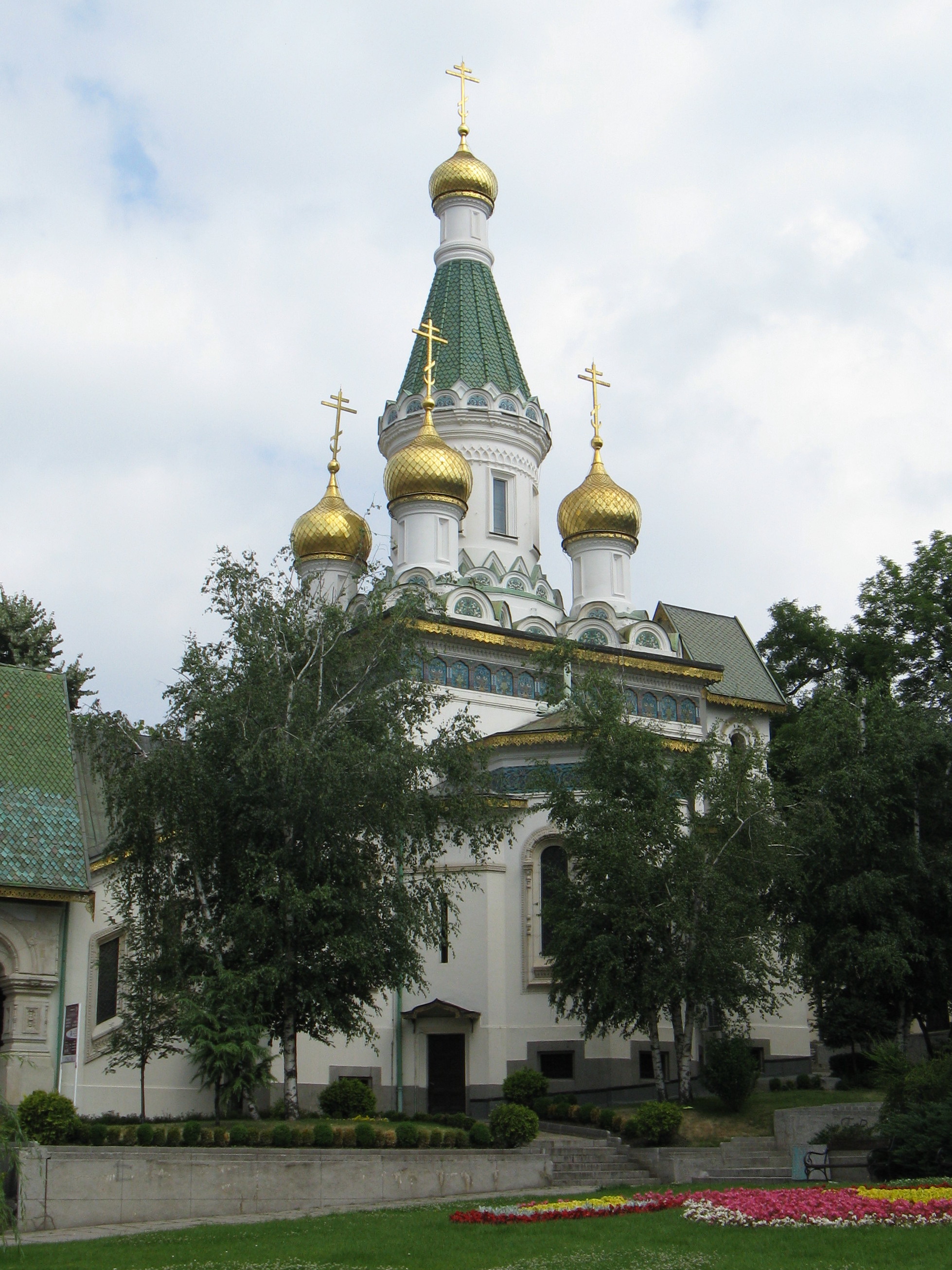 Colazione e poi via con il giro della città. Ci accompagna Olga, una guida molto preparata ma forse troppo seria per un gruppo di scapestrati come noi. Lo si capisce già dal pullman, quando, giustamente dal suo punto di vista, vorrebbe raccontarci per bene la storia della città prima di iniziare a visitarla. Purtroppo, il viaggio dall’albergo al centro è breve e quando raggiungiamo la piazza Aleksander Nevski lei è ancora più o meno al 1400, all’inizio del periodo di dominio ottomano. Con il pullman fermo a motore acceso, lei continua per un po’ imperterrita (è molto bulgara in questo), ma poi la convincono a farci almeno scendere e a continuare il racconto giù dal pullman. Il cambio di programma la innervosisce e l’emozione le fa un po’ tremare la voce, ma riesce più o meno ad arrivare in fondo, anche se nel frattempo l’attenzione è calata drasticamente. In realtà come guida sa abbastanza il fatto suo, certo non si può dire che sprizzi allegria da tutti i pori.