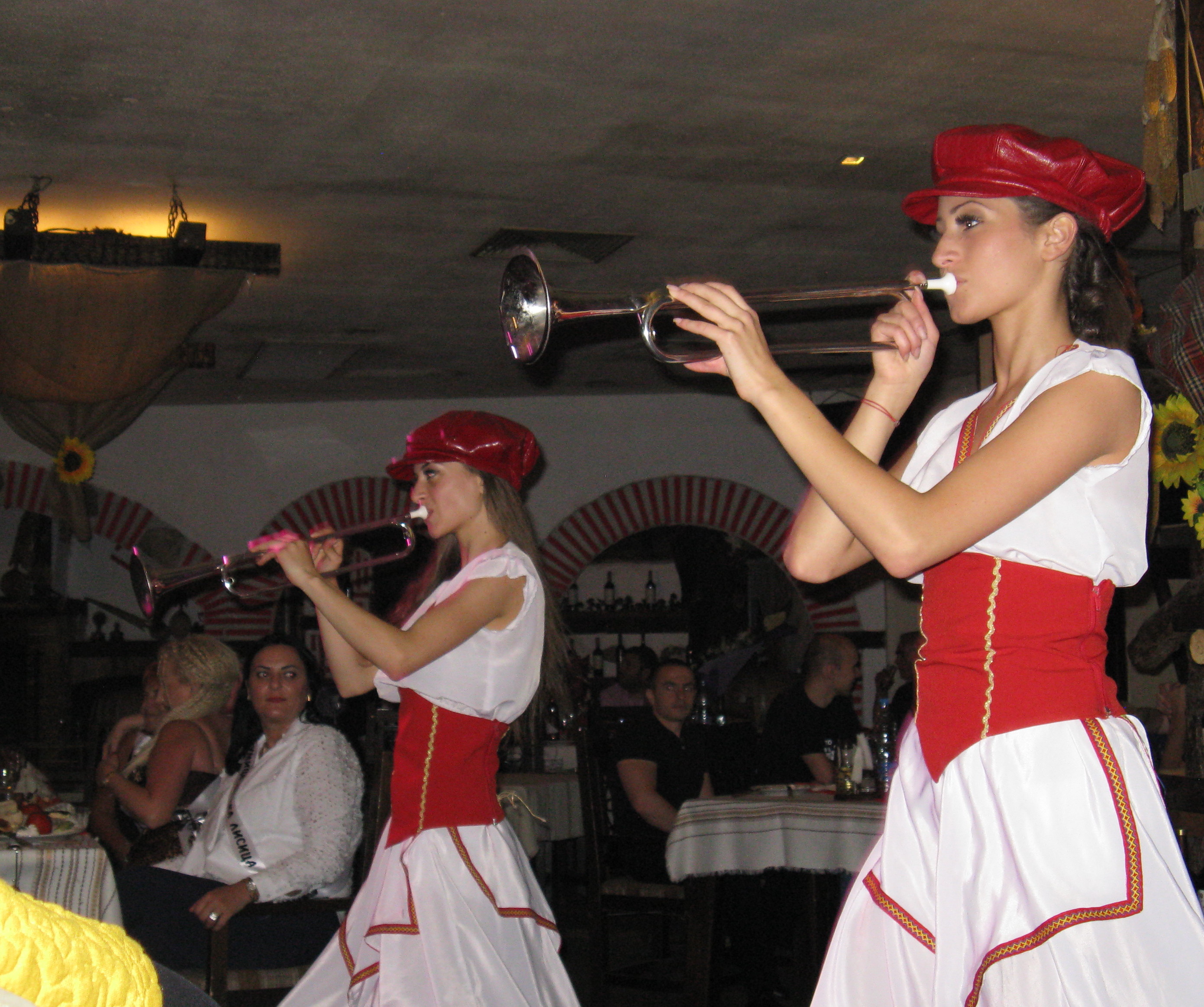Ma è più il dopo cena che è memorabile. Lo spettacolo organizzato dal locale prevede musica bulgara, ma anche pezzi classici della tradizione rom come Gelam Dade Tudureste o Chaje Shukarije, che pure non sembrano molto apprezzati qui. Ci sono anche balli di chiaro stampo greco, nei quali il nostro compagno di viaggio greco Aristotelis si lancia senza remore e con maestria. A un certo punto, come nei migliori locali dell’est, in nostro onore parte “L’italiano” di Toto Cutugno…