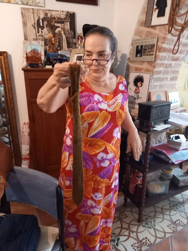 Prima di salutarci, Chiara ci ha mostrato una cravatta di bisso fatta per il marito e ha regalato un filo di bisso ad Alessandro, il più giovane del gruppo con i suoi 16 anni, che si è mostrato interessato e anche preoccupato per il rischio di estinzione della pinna nobilis, di cui sapeva da precedenti esperienze con il WWF.