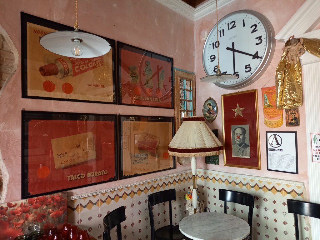 Le strade del centro cittadino brulicano di locali che sicuramente prendono vita nelle sere d’estate. A noi è piaciuto particolarmente un pub che si chiama Barone Rosso e che è letteralmente strapieno di cimeli di modernariato che il proprietario ha raccolto in occasione di chiusure di altri bar o negozi. Si capisce subito, poi, che è un posto piuttosto alternativo e con un orientamento “politico” che ci piace.