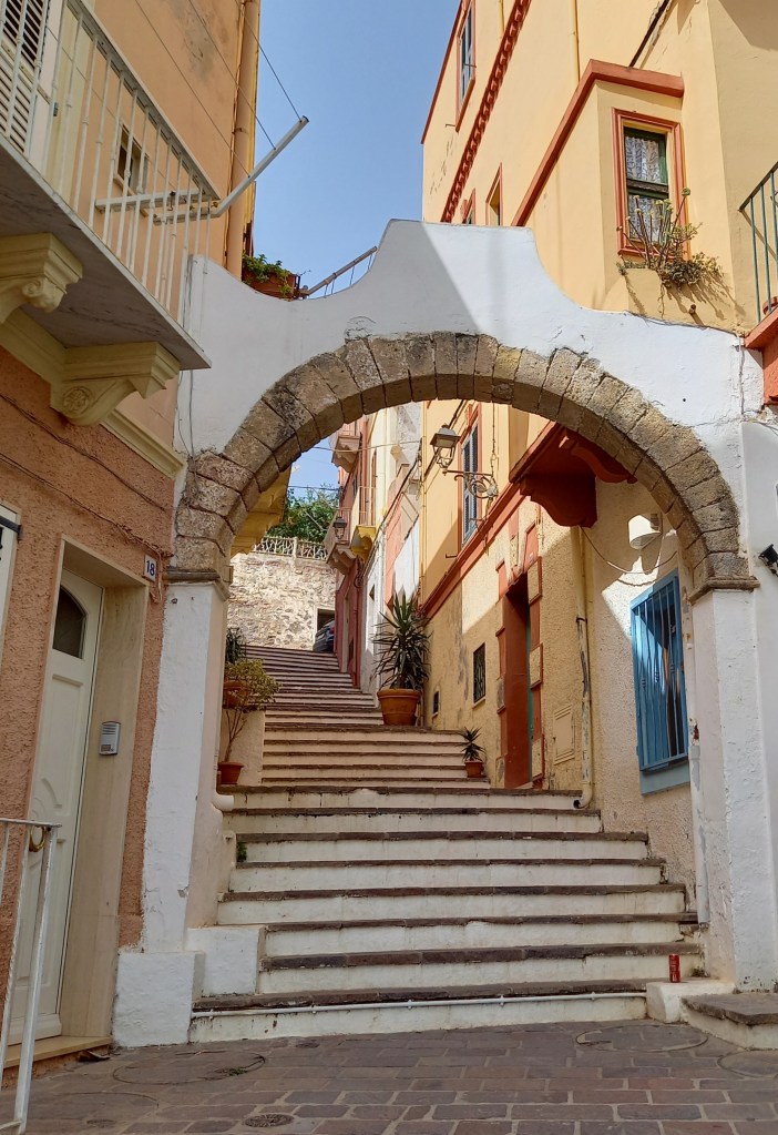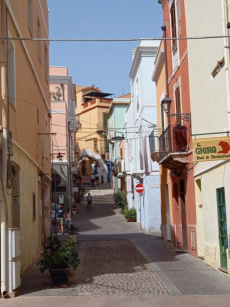 Dopo la colazione, che come da consiglio di Silvia facciamo tutti insieme al panificio Calabrò, che ha i tavolini all’aperto e offre un bell’assortimento di dolcezze mattutine, ci dividiamo: c’è chi vuole dirigersi subito verso le spiagge (qualcuno nel gruppo conosce già Sant’Antioco), ma c’è anche chi preferisce vedere qualcosa in città e poi spostarsi in traghetto a Carloforte, nella vicina isola di San Pietro, caratterizzata anch’essa da una storia affascinante che si riflette nelle sue architetture e nella particolare lingua tuttora parlata dai suoi abitanti più autentici. Io propendo per questa seconda ipotesi, e quindi si parte dalla basilica di Sant’Antioco Martire.