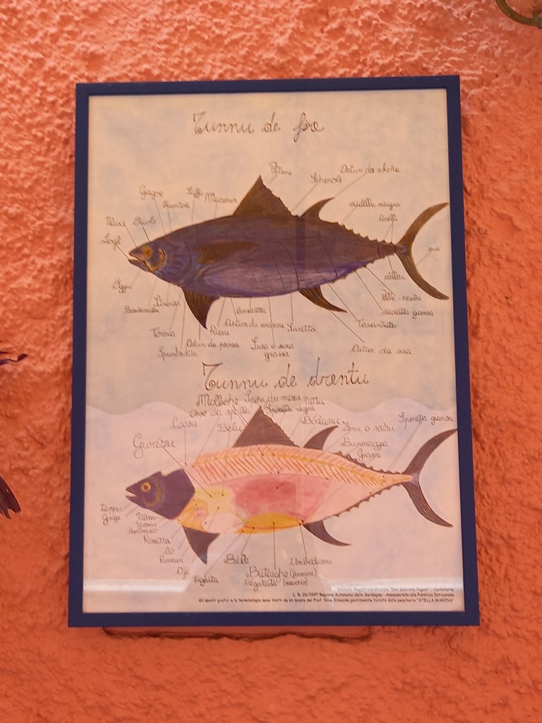 Il tabarchino, lingua tradizionalmente parlata nei comuni di Carloforte e Calasetta, ha origine direttamente dal ligure e fa parte del Genoise d’Otre Mer, vale a dire la lingua parlata nei secoli nella Repubblica Genovese, anche dai suoi abitanti dei possedimenti nei territori d’oltremare, che dall’anno 1000 in poi si insediarono presso tutte le rotte marittime controllate dalla Repubblica. La lingua parlata ancora oggi a San Pietro è forse l’ultimo baluardo di quell’epoca e conserva tutti gli elementi caratteristici della lingua d’origine, anche se oggi alcuni termini sono diventati desueti. Il tabarchino conserva molti termini antichi ma ne contiene anche tanti di origine francese, a testimonianza dei possedimenti della Repubblica nel Nizzardo e dei contatti commerciali tra la repubblica e i territori tra Francia e Spagna. L’80% della popolazione di Carloforte usa correntemente l’idioma tabarchino. Noi non abbiamo avuto purtroppo occasione di sentirlo molto nel corso del nostro breve passaggio a Carloforte, anche perché è una località molto frequentata da turisti nel periodo estivo; ma già da poche parole scambiate da due addetti alla nettezza urbana e dai discorsi al tavolo di una gelateria, dove gli avventori erano tutti carlofortini, vi posso dire che è proprio vero: non tutto si capisce, ma l’accento, il sound, è decisamente genovese! E del resto, se i vicoli sono chiamati carruggi non si può sbagliare…