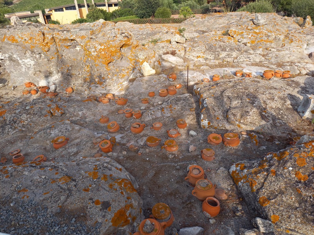 Per la visita al museo si parte dal tofet punico, che fa parte di una più ampia area archeologica che richiederebbe molto più tempo. Il tofet (termine di origine ebraica che compare nell’Antico Testamento) è un’area sepolcrale destinata ad accogliere le sepolture di una particolare categoria di defunti: i bambini nati morti o deceduti in tenera età. Per lungo tempo gli studiosi, condizionati dalle fonti greche e latine, hanno ritenuto che fosse il luogo preposto ai sacrifici cruenti dei primogeniti immolati alla divinità, tanto che il tofet era diventato il simbolo della crudeltà e dell’implicita inferiorità della civiltà fenicio-punica. Solo in anni più recenti, a partire dagli anni ’80 del secolo scorso, si è accertato che in realtà si trattava, sostanzialmente, di propaganda contro quella civiltà. Dalle analisi osteologiche, infatti, è emerso, qui come in altri tofet punici (ad esempio quello di Tharros), che i resti erano riconducibili a feti o bambini deceduti entro i due anni, e privi di qualsiasi segno di morte violenta. Oggi si sa che quei resti, sepolti in pentole di terracotta, facevano parte di un santuario che serviva a invocare la benedizione divina per nuove nascite, che era parte integrante del rituale, in un’epoca in cui la grande mortalità infantile rende irrealistico il sacrificio sistematico di un numero considerevole di vite umane.
