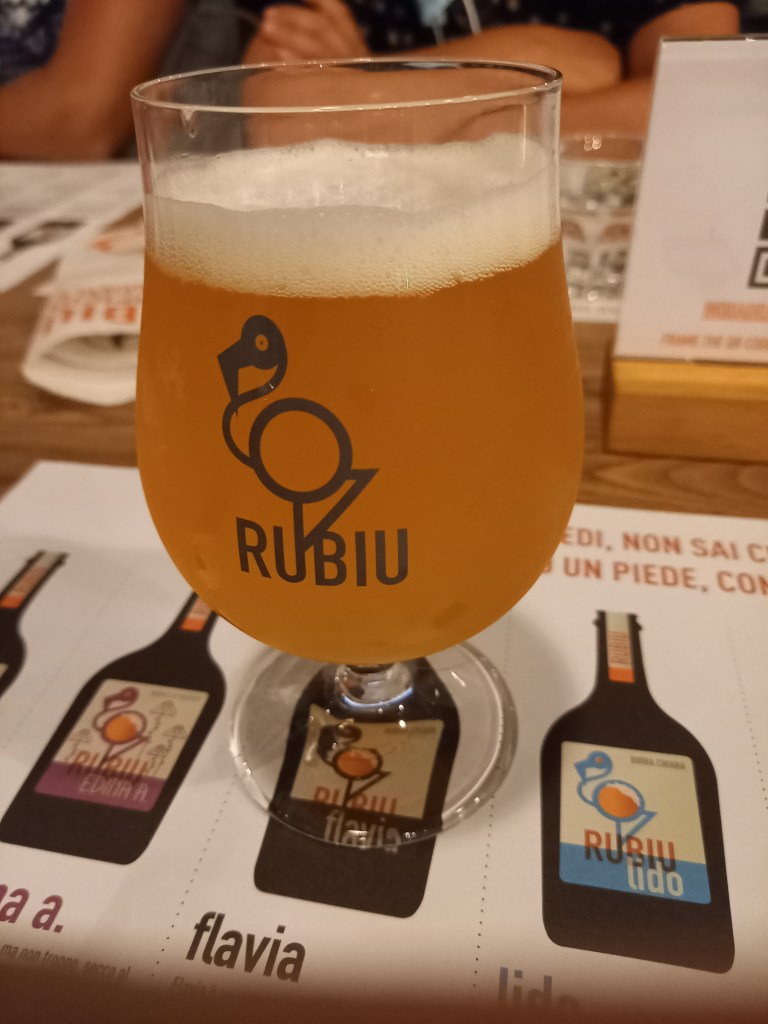 Finito di visitare il museo, di corsa a casa: doccia veloce e si va a cena. Per l’ultima sera a Sant’Antioco abbiamo scelto il birrificio artigianale Rubiu, dove ci facciamo una pizza accompagnata da una delle tante birre prodotte dalla casa. Io, in omaggio al nostro tour minerario, non posso che scegliere la Flavia, che è così definita: una Golden Strong Ale chiara, alcolica, complessa e appagante, ma anche pericolosamente beverina.