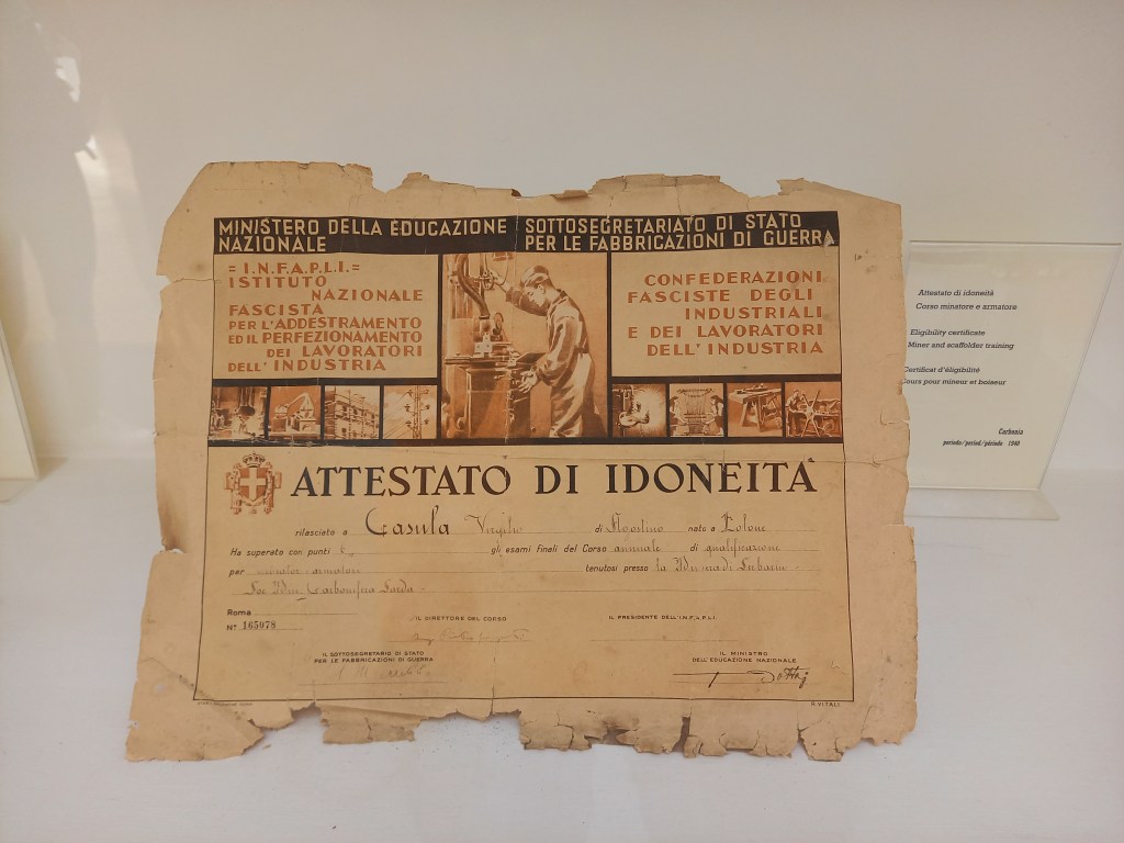 Una volta risaliti, visitiamo il bellissimo e ricco museo multimediale dove, oltre ai molti oggetti d’epoca in mostra e alle foto, sono riportate molte altre informazioni sulle condizioni di lavoro dei minatori.