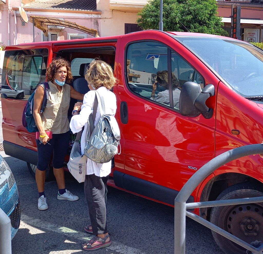 Silvia arriva puntuale dopo colazione a prenderci col pullmino rosso, si ricaricano i bagagli e si riparte, prima tappa Carbonia.