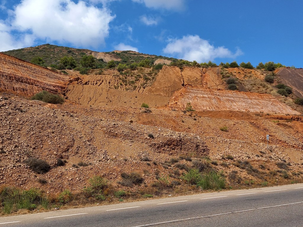 Come e quanto la miniera abbia influenzato il paesaggio di questo territorio lo si capisce già fermandosi per un attimo sul ciglio della strada Statale 126 a guardare gli accumuli di fanghi rossi che da decenni sono diventati lo scenario di questo pezzo di Sardegna. Nei pressi di Iglesias sorgono infatti le imponenti discariche, per certi aspetti monumentali, note con il nome di Fanghi Rossi. Da qui si estendono per un tratto di circa un chilometro; catturano l’attenzione dei passanti per la loro colorazione rosso-arancio nelle giornate soleggiate, virando al rosso cupo nelle giornate umide. La discarica dei fanghi rossi è una testimonianza delle attività metallurgiche degli impianti della miniera di Monteponi. Dobbiamo la loro presenza all’Impianto di Elettrolisi che dal 1926, per circa mezzo secolo, ha recuperato lo zinco con un processo chimico-fisico: la colorazione rossa è legata alla presenza di notevoli quantità di ferro.