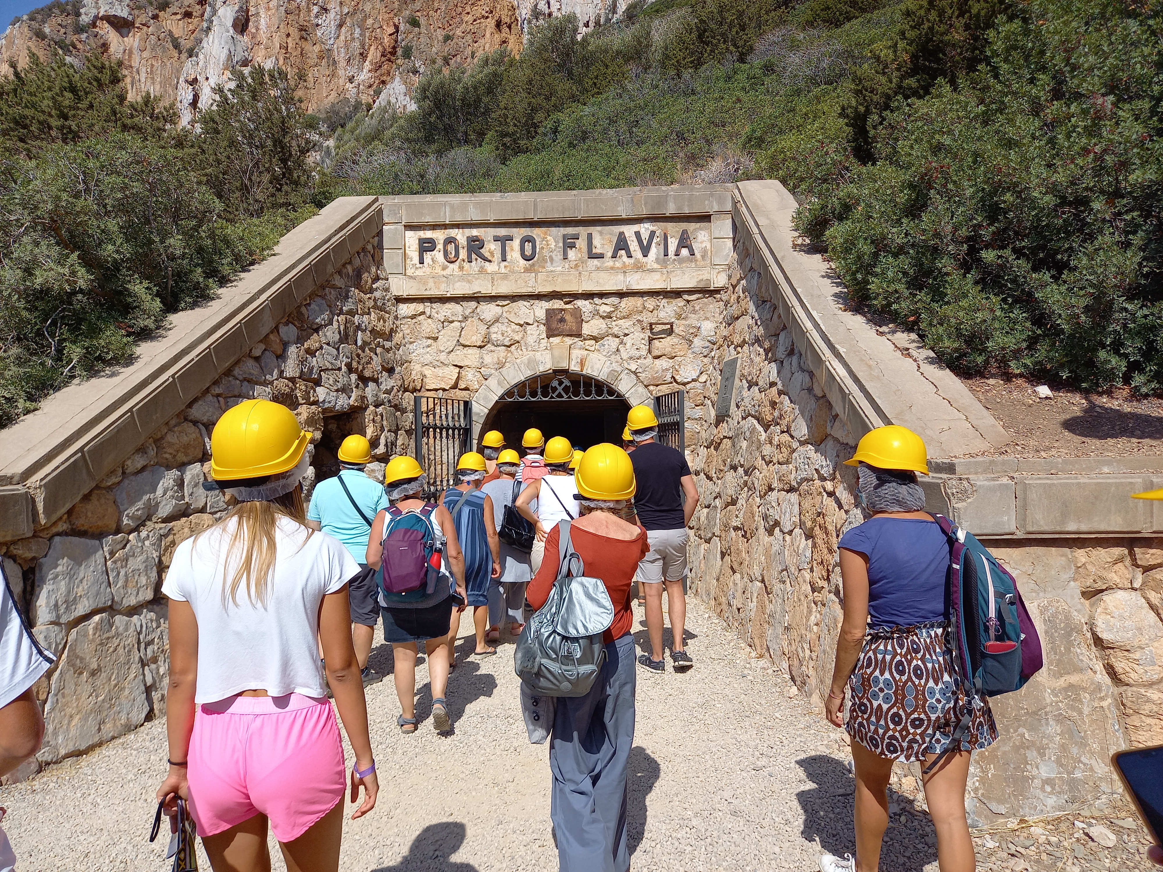 Due gallerie sovrapposte sboccano a picco sul mare, intervallate da giganteschi silos capaci di contenere fino a diecimila tonnellate di materiale. Nella galleria superiore si caricavano i silos; da quella inferiore, dotata di nastro trasportatore, si imbarcavano piombo e zinco sui piroscafi grazie a un braccio mobile. A progettare il capolavoro d’ingegneria senza precedenti fu il direttore Cesare Vecelli. Al ‘porto’ diede il nome della figlia, Flavia, che campeggia sulla torretta in stile medievale all’ingresso del tunnel. Per capirne la portata rivoluzionaria, bisogna immaginare che fino ad allora i minerali da trasportare al porto di Carloforte, da dove partivano verso il Continente, erano caricati a mano sulle bilancelle (navi a vela).