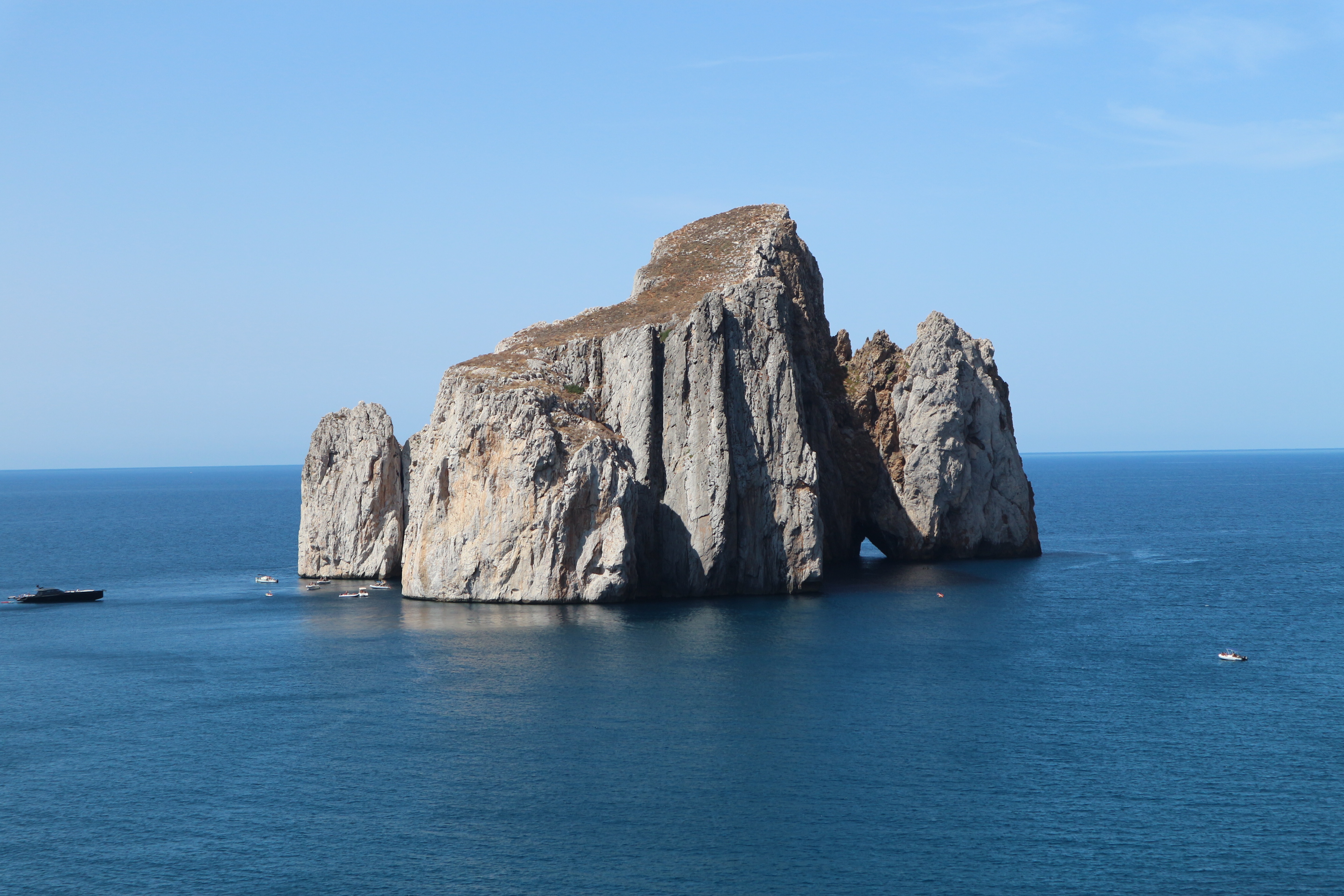 Uscendo dalla galleria, ci troviamo di fronte l’incredibile spettacolo del Pan di Zucchero, con i suoi 133 m il faraglione più alto del Mediterraneo.
