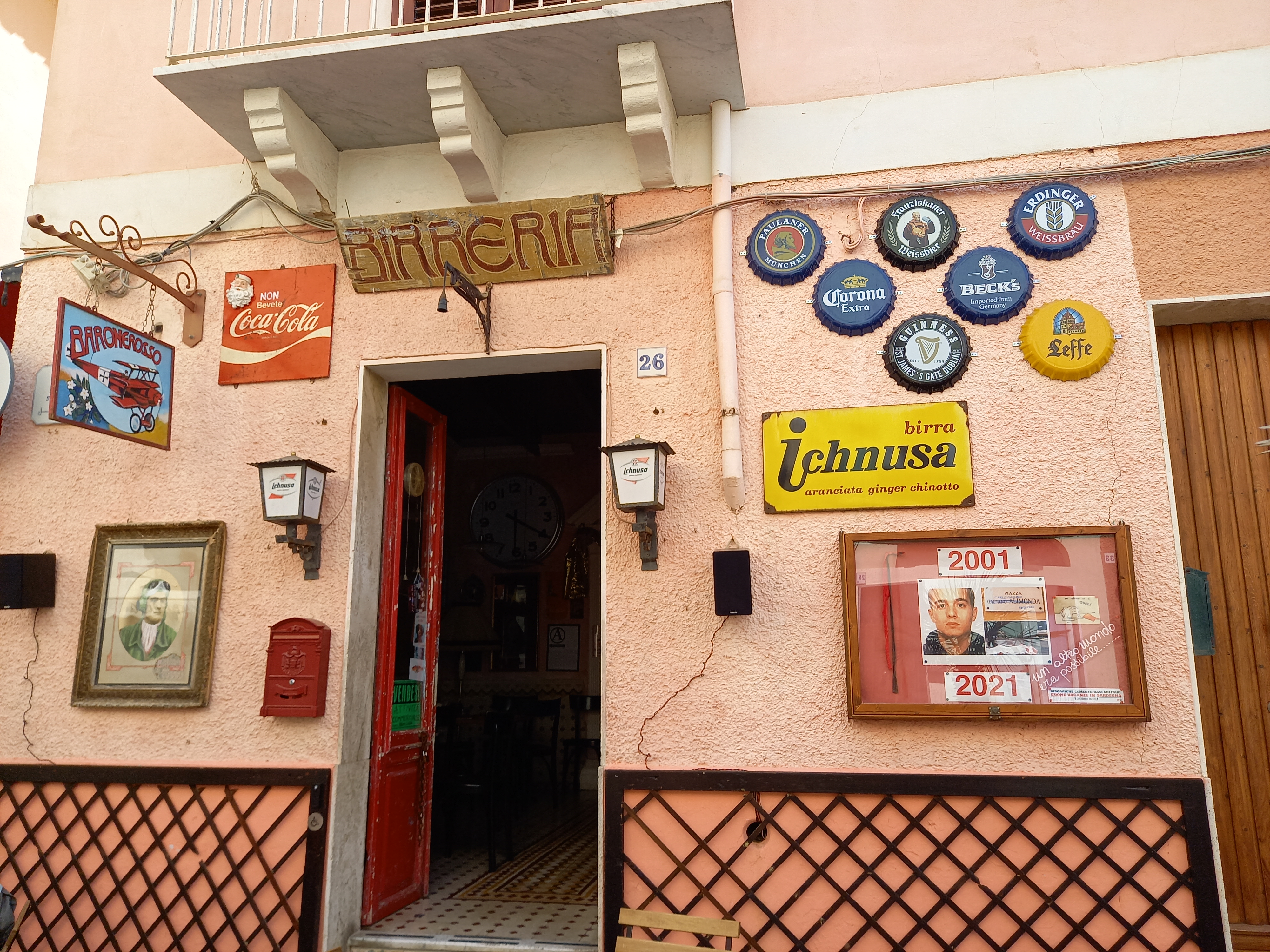 Le strade del centro cittadino brulicano di locali che sicuramente prendono vita nelle sere d’estate. A noi è piaciuto particolarmente un pub che si chiama Barone Rosso e che è letteralmente strapieno di cimeli di modernariato che il proprietario ha raccolto in occasione di chiusure di altri bar o negozi. Si capisce subito, poi, che è un posto piuttosto alternativo e con un orientamento “politico” che ci piace.