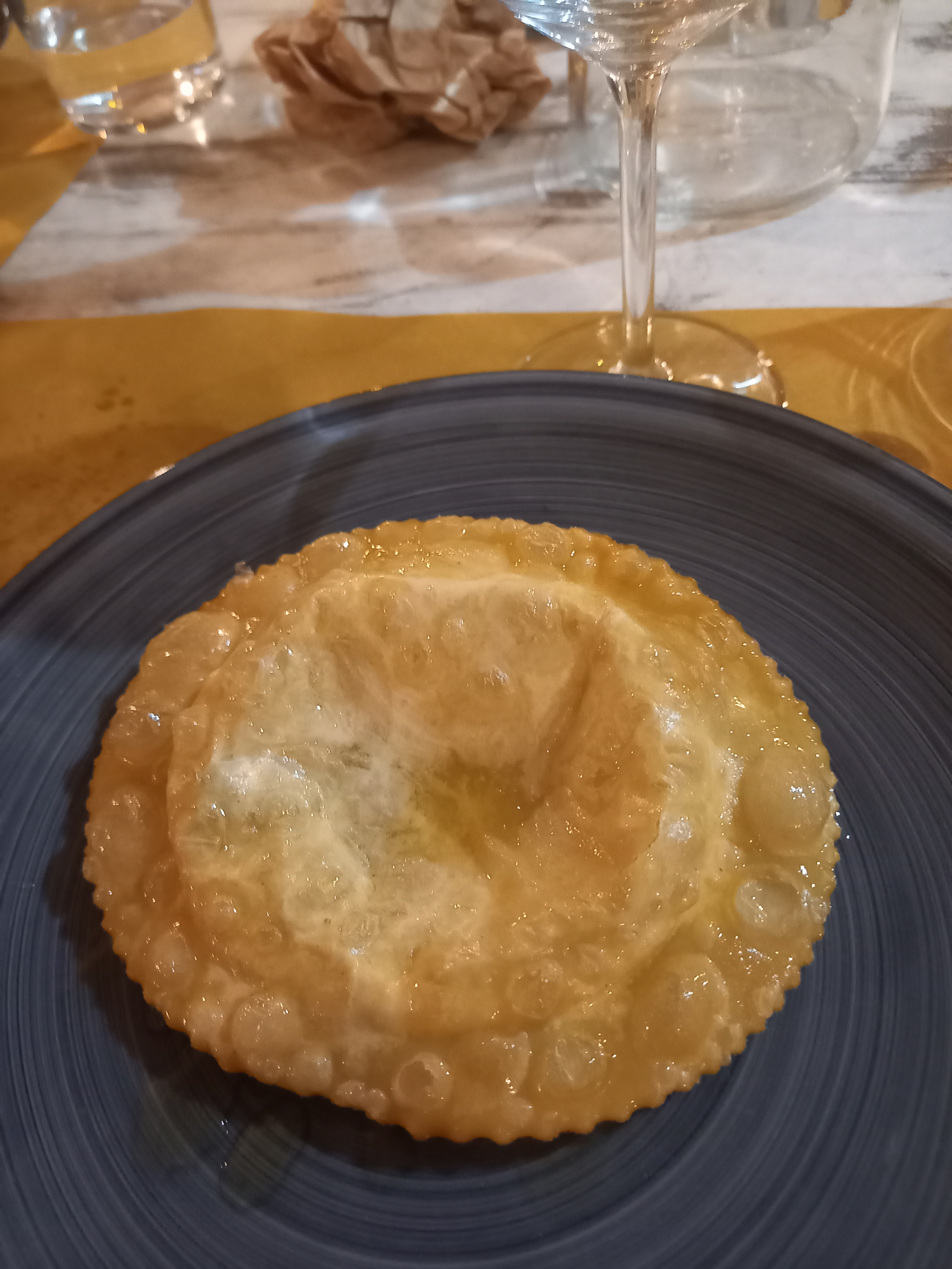 Rientrando a Sant’Antioco, c’è il tempo solo per una doccia e poi si va a cena. Cena ancora a base di pesce, che però per me si conclude con una seada, un altro dei dolci sardi che adoro: è un raviolone tondo ripieno di pecorino e immerso nel miele (esiste anche la versione con lo zucchero, ma a me piace così, col miele). So che non piace a chi non ama i dolci troppo… mielosi, ma per gli altri vale la pena.