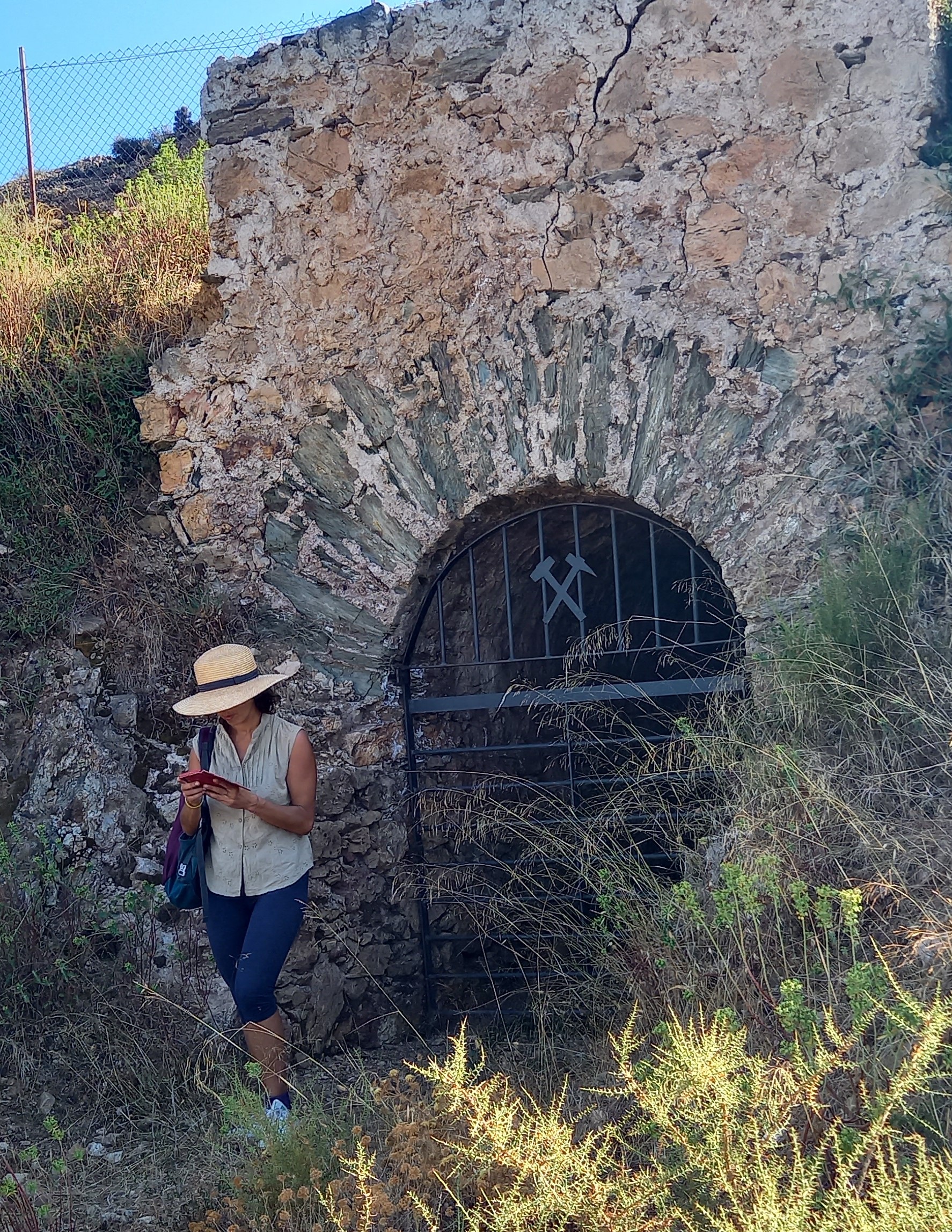 Detto questo, la nostra passeggiata con Michele, nonostante il caldo, è stata molto piacevole e interessante. Lui è un’ottima guida, che ci ha saputo spiegare con competenza e passione la storia dei luoghi più evocativi di Monteponi, dalla palazzina Bellavista al pozzo Sella (che prende il nome da Quintino Sella, Ministro delle Finanze del Regno d’Italia), opera di particolare pregio ingegneristico costruita fra il 1872 e il 1874 per l’eduzione delle acque nell’attività estrattiva, ai forni, a bordo strada, dove la soda cotta diventava calce viva e dalle ceste usciva polvere di calce che ustionava le pelli sudate dei minatori.