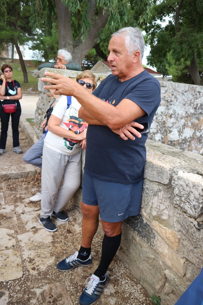 A Rovigno avremo una guida davvero d’eccezione, l’ex vicesindaco Marino Budicin, che nel presentarsi si definisce “l’unico vicesindaco con la batana” (e forse per dimostrarlo si presenta in tenuta super-sportiva) ma ci anticipa purtroppo che, date le condizioni meteomarine previste, è molto improbabile che noi si riesca effettivamente a fare il programmato giro per guardare Rovigno dal mare.