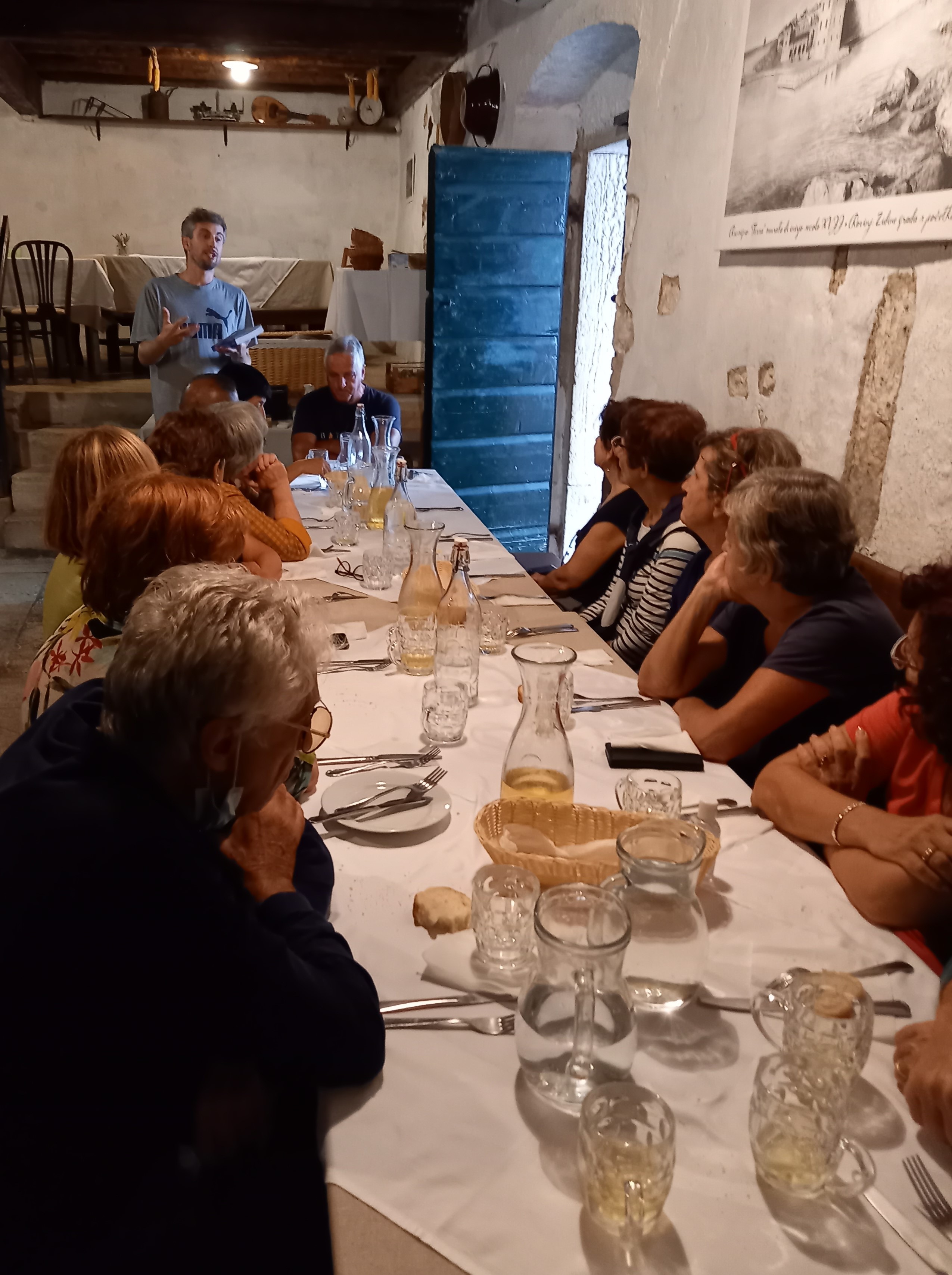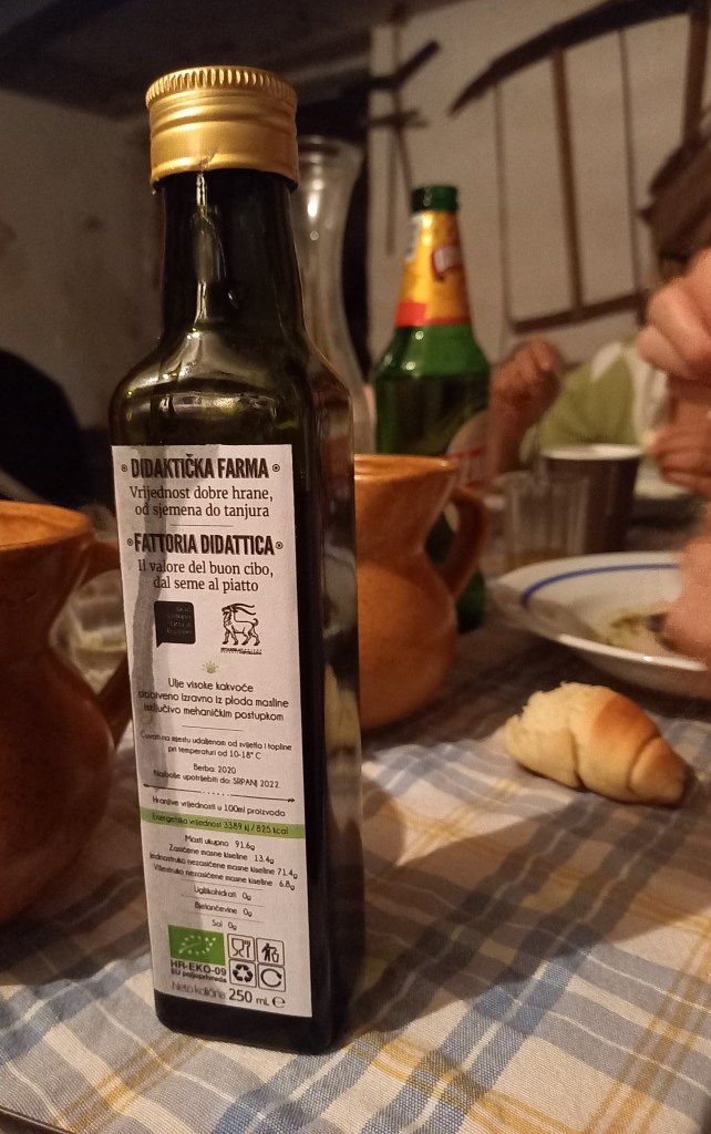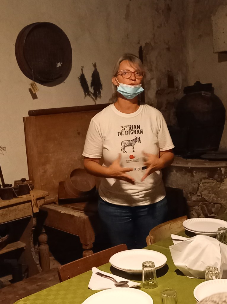 E poi una cena che è stata anche questa di grande qualità: l’associazione che gestisce il museo, infatti, è anche fiduciaria del Convivium Slow Food Istria. Dignano è un importante centro di produzione per l’olio di oliva, che è peraltro un altro prodotto caratteristico di tutta l’Istria. Un’altra specialità che abbiamo potuto assaggiare, come accompagnamento al dessert, è il Vin de rosa di Dignano, un passito che fa parte del patrimonio locale: nel passato non c’era festa importante nella vita delle famiglie del luogo che non venisse celebrata con un bicchiere di questo vino particolarissimo. In anni più recenti, visti gli scarsi benefici economici e i rischi di produzione, il prodotto fu quasi dimenticato, ma ora grazie a un progetto specifico sta prendendo di nuovo vita. Viene prodotto in genere con uva malvasia, pur esistendo la tendenza a farlo anche con altre varietà, soprattutto di moscato.