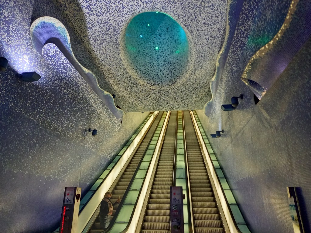 L’ultima emozione della giornata è la corsa per prendere l’ultima metropolitana utile per tornare in albergo (c’è da dire che chiude un po’ presto, per noi abituati agli orari della metro milanese, ma restano comunque altri mezzi). Siamo costretti ad ammirare un po’ frettolosamente gli spettacolari interni della stazione di Toledo, progettata dall’architetto catalano Óscar Tusquets, che secondo l’inglese Daily Telegraph e la CNN è la stazione della metropolitana più bella del mondo.