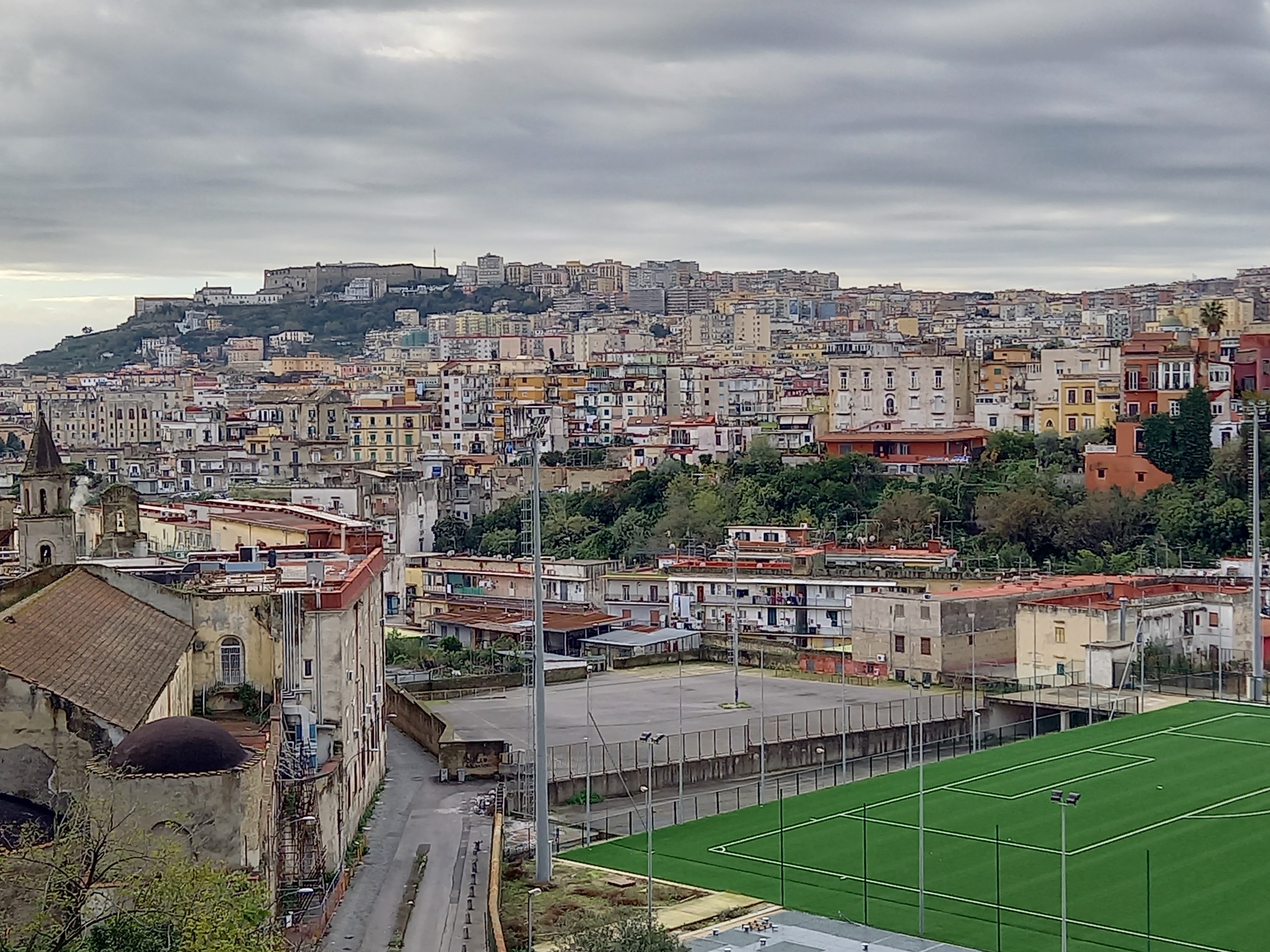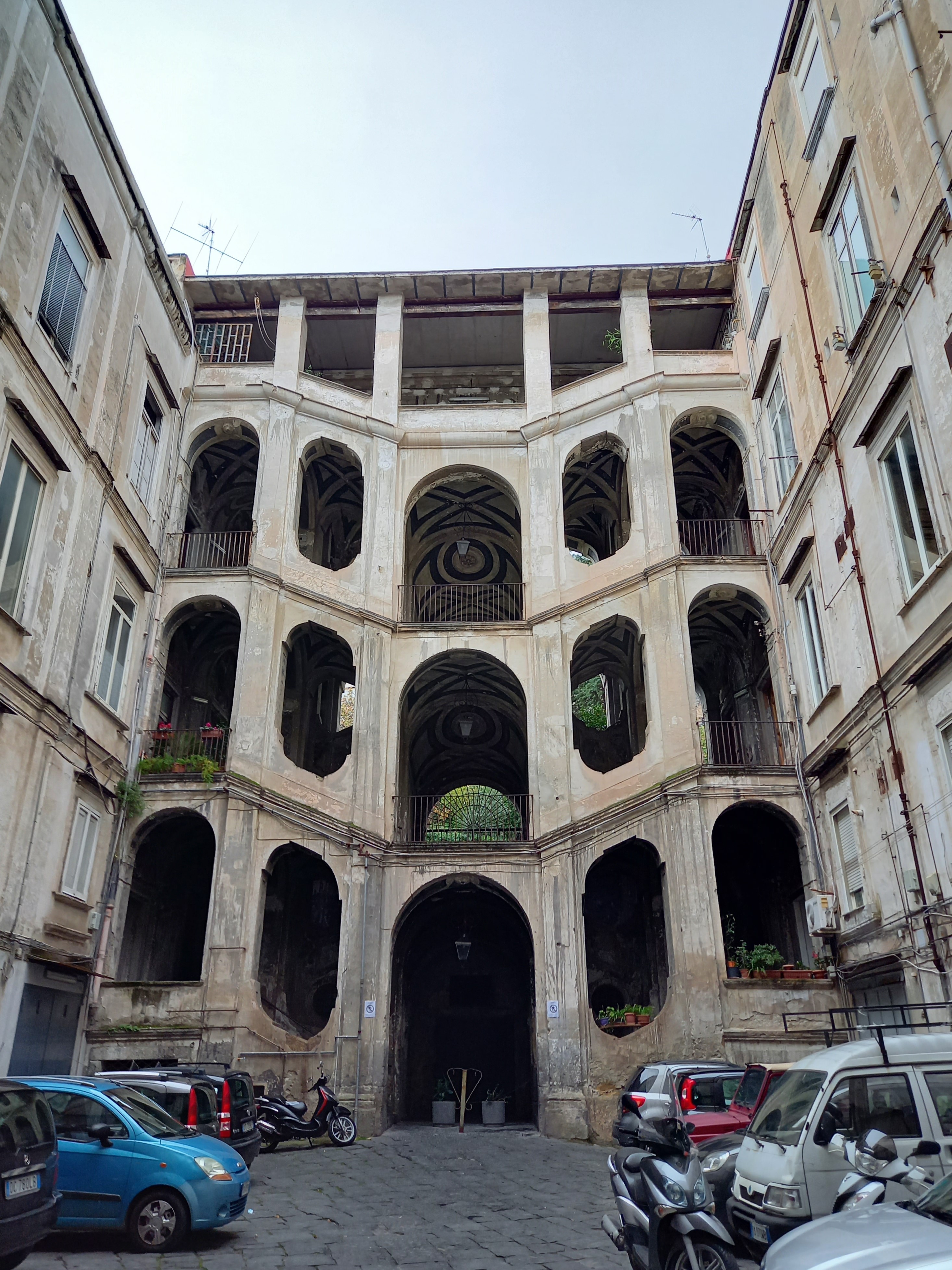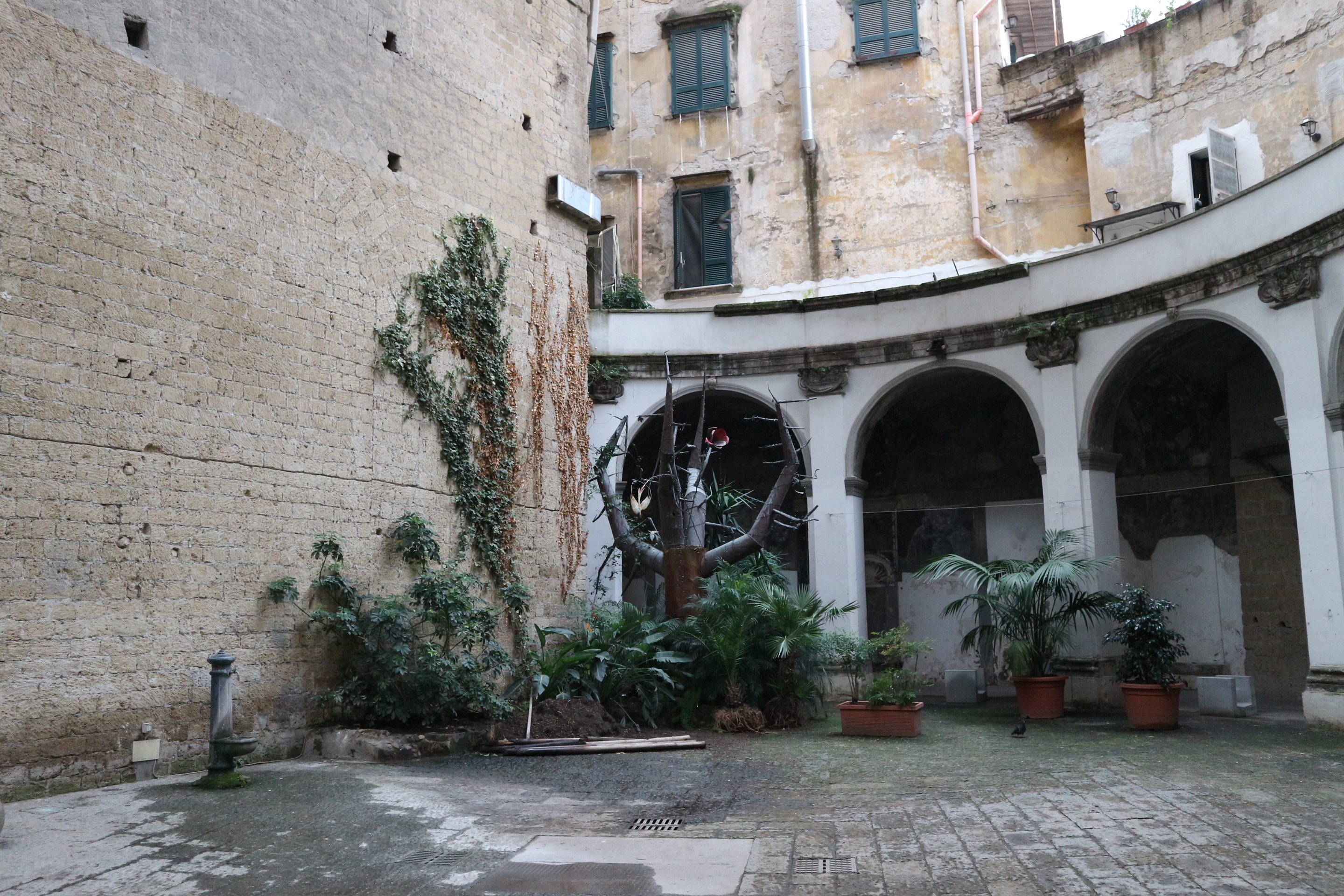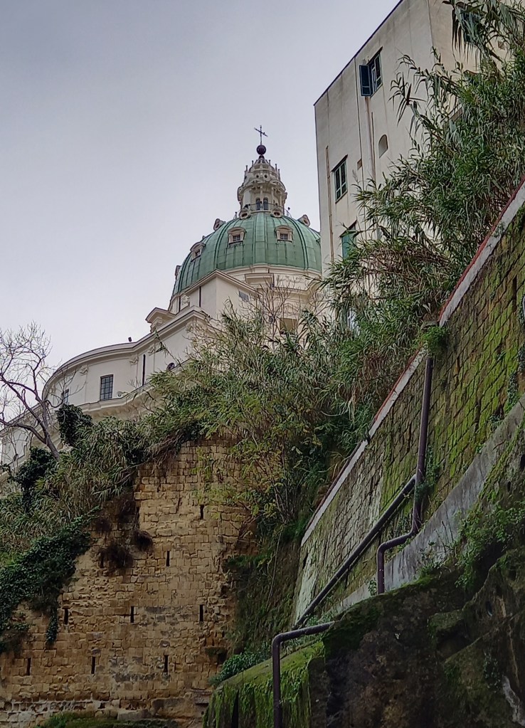 Usciamo mentre sta passando un colorato corteo di babbi natale ed elfi musicisti; mentre loro suonano Jingle bells e Last Christmas, ci avviamo verso l’ultimo tratto del nostro percorso nel rione Sanità, quello tra le sue architetture monumentali.