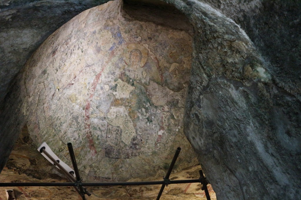 Questa è la parte più antica delle catacombe, e se si guardano gli affreschi si possono vedere simboli anche pagani come il melograno, che è simbolo di resurrezione, come anche la mandorla: per questo il torrone è fatto con le mandorle. Il torrone è anch’esso un simbolo e rappresenta un omaggio ai defunti, un modo di “allietare” il viaggio verso l’aldilà. Non era difficile, nei secoli scorsi, trovare delle pietanze sulle tombe o sui loculi. L’omaggio era offerto in virtù del fatto che l’anima del caro estinto, in occasione della festa dei morti, potesse tornare per qualche ora a far visita ai parenti ancora in vita. Un altro noto simbolo di resurrezione e vita eterna è il pavone, che ogni anno rinnova le sue penne; anche qui si può vedere un affresco che rappresenta un pavone.