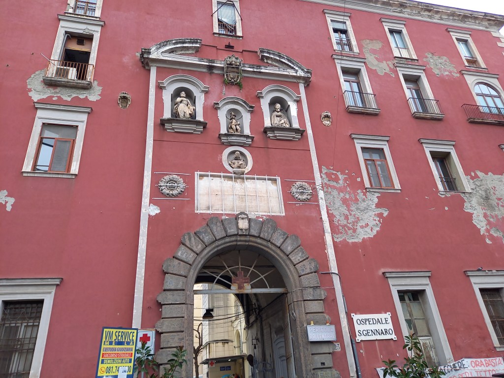 Uscendo per così dire “a riveder le stelle”, anche se è mattina e si vede soltanto un cielo grigio, ci incamminiamo, scendendo dalla collina di Capodimonte, verso il cuore del rione Sanità. Si passa dall’Ospedale di San Gennaro dei Poveri, ricavato nel ‘400 da un antico monastero e destinato a lazzaretto per gli appestati.