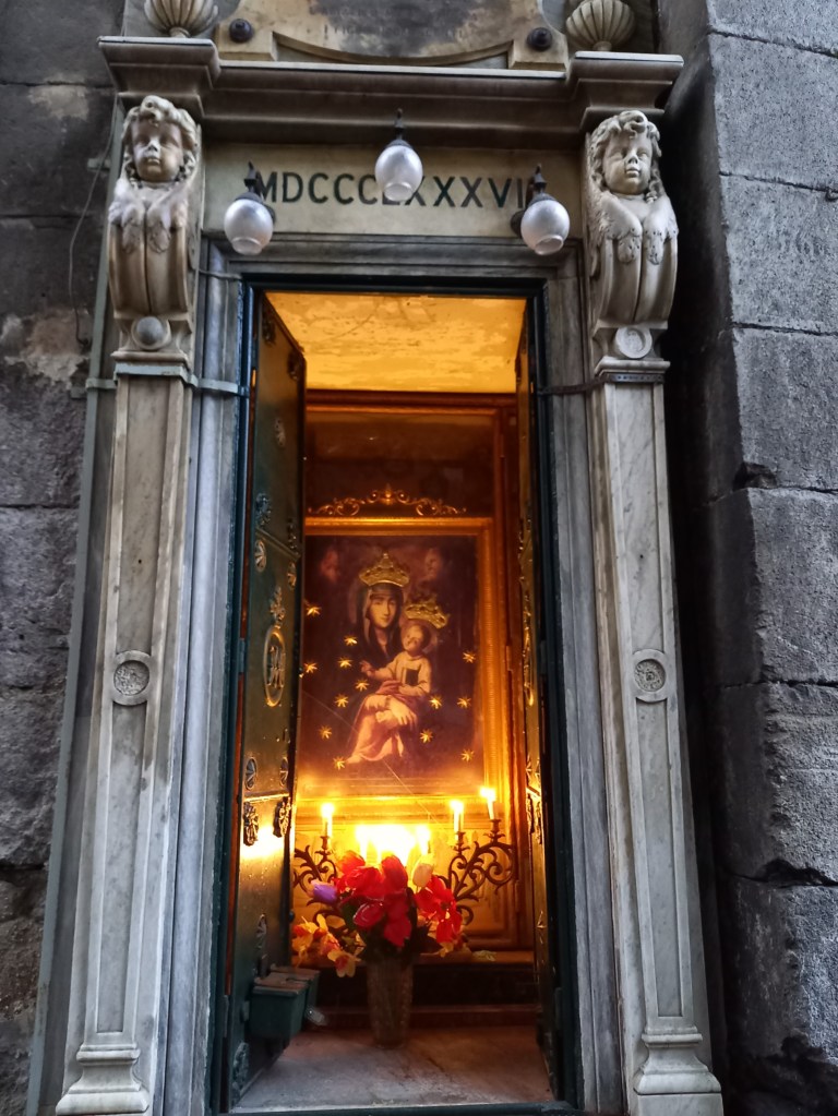 In poche fermate siamo a Piazza Municipio, e da qui prendiamo l’autobus per raggiungere la Sanità. Il nostro percorso parte, dopo un caffè e un’occhiata veloce alla Basilica dell’Incoronata Madre del Buon Consiglio, dalle catacombe di San Gennaro.