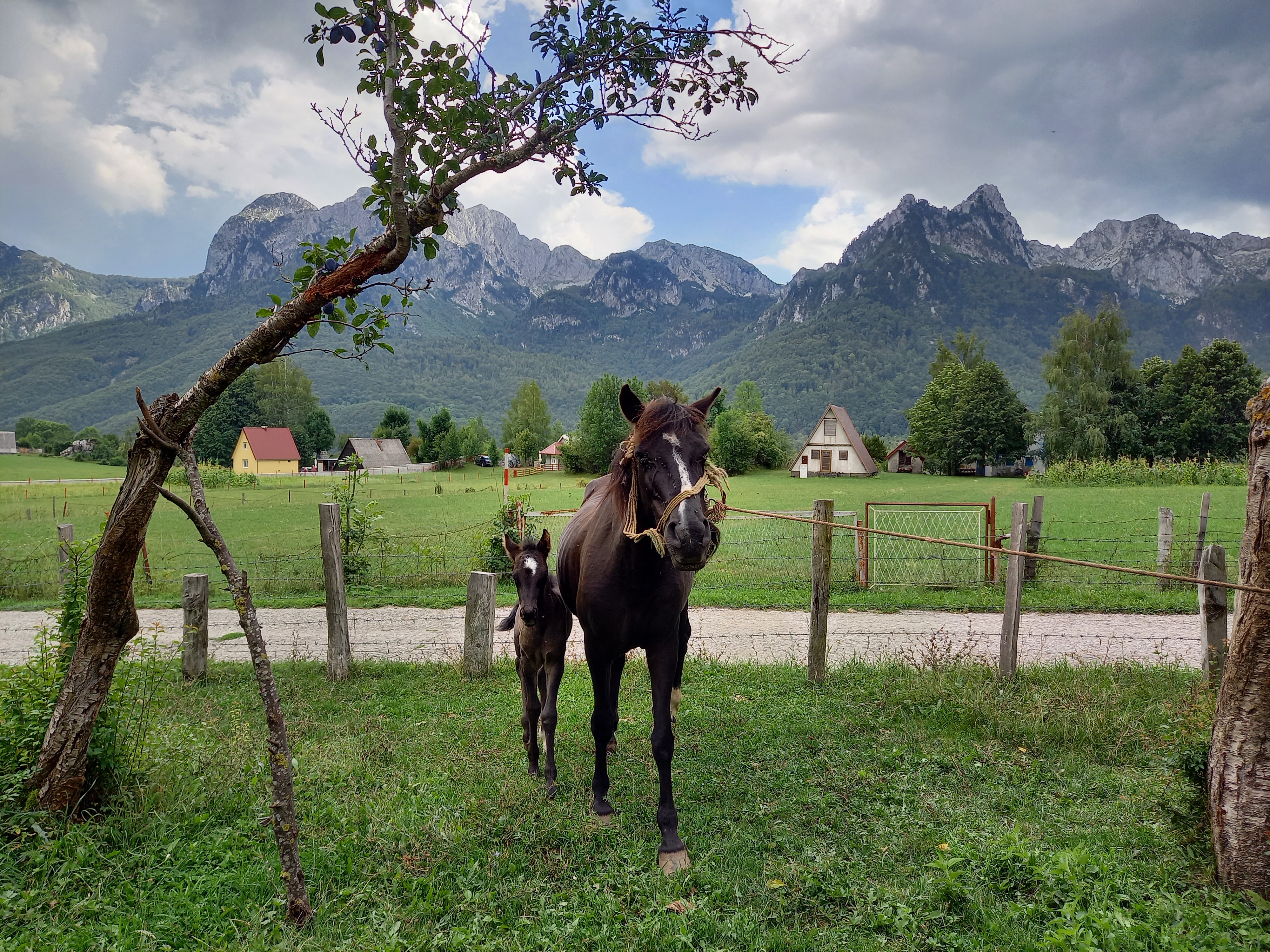Dopo di che bisogna ripartire, perché anche oggi il tempo si sta purtroppo mettendo al brutto e conviene raggiungere al più presto il posto dove dormiremo, che è un ecovillaggio fatto di katuni, le tipiche case in legno dei pastori montenegrini, a 950 m di quota.
