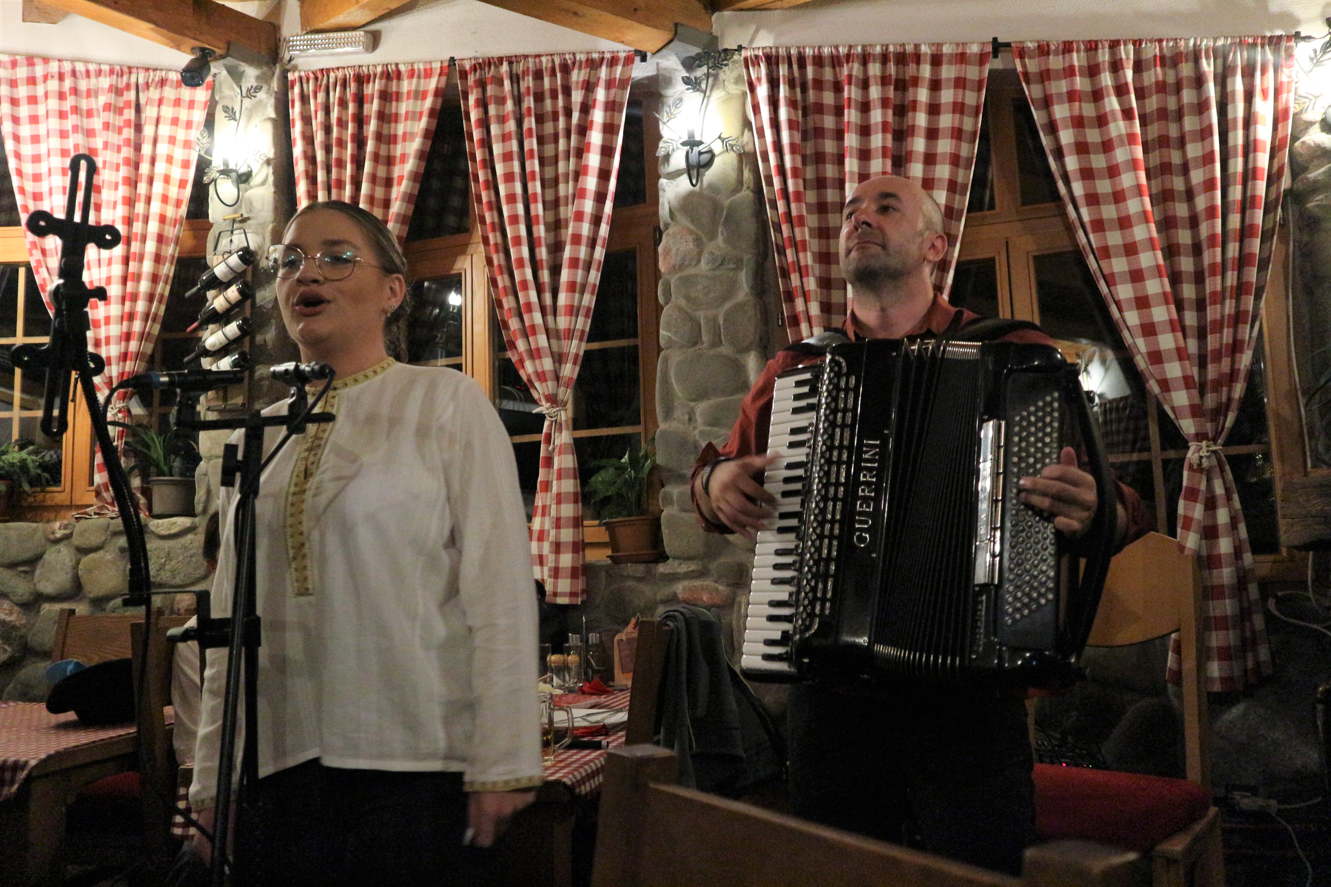 La cena di questa sera sarà accompagnata da un gruppo di musicisti. Eugenio ha provato a farli venire un po’ prima per abbreviare l’attesa ma anche loro più di tanto non possono anticipare. La loro esibizione, però, ci farà dimenticare i piccoli contrattempi della giornata e il fastidio per non essere riusciti a vedere il lago.