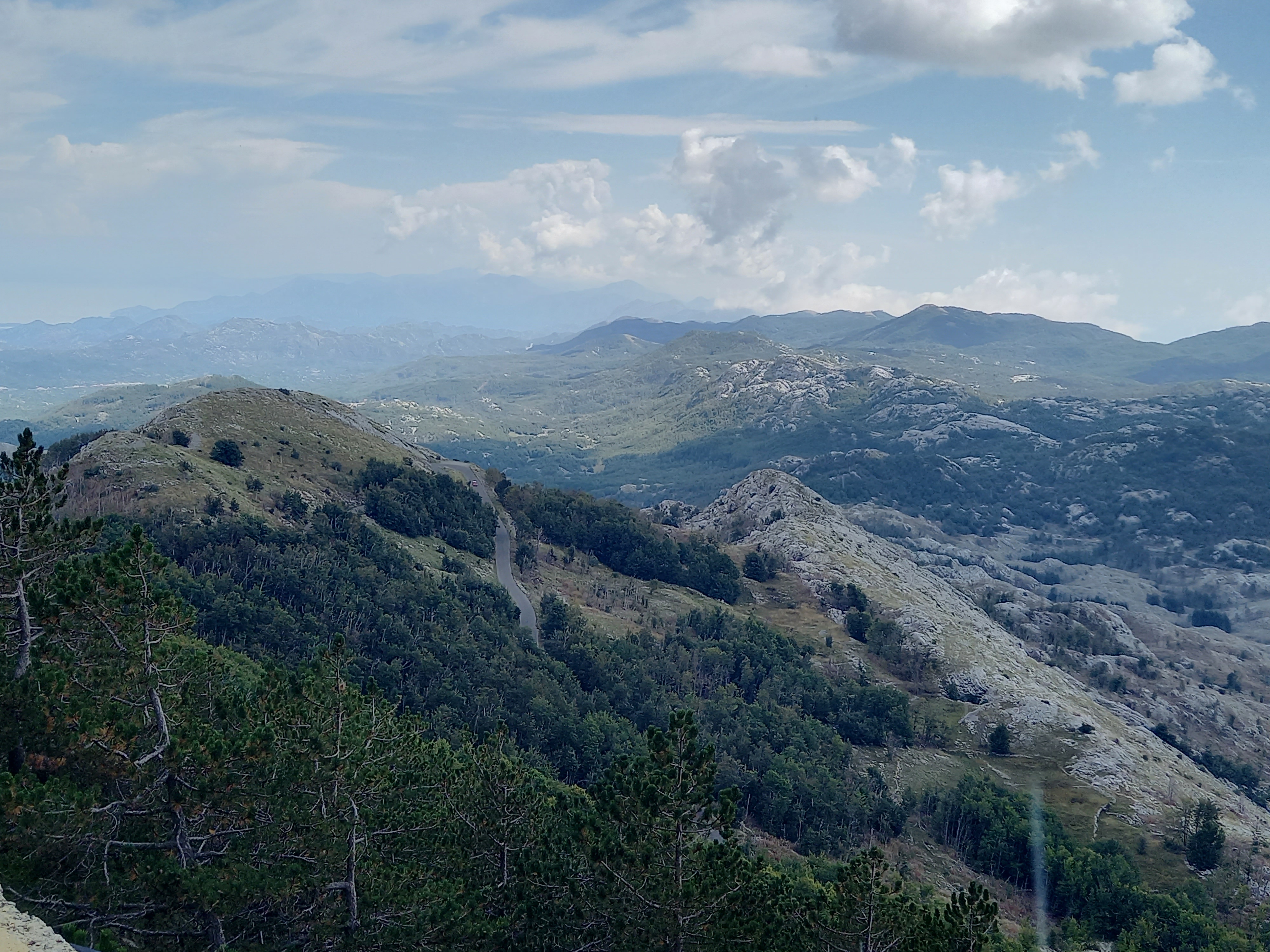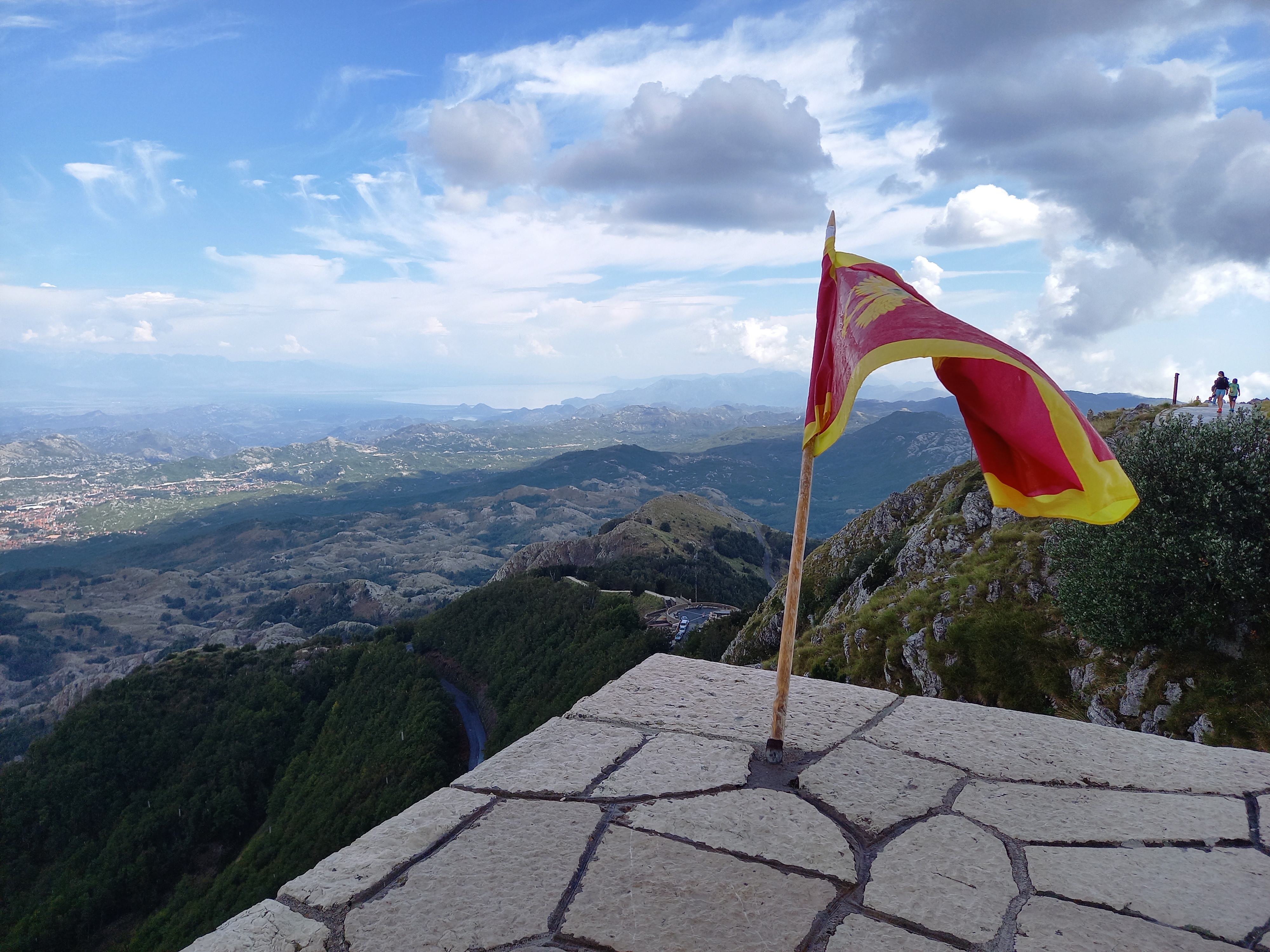 Ci sediamo a mangiare un panino, ovviamente con prosciutto crudo affumicato e formaggio di capra (la classica combo montenegrina), e poi si riparte su un’altra strada tutta curve che si inerpica sul monte Lovćen fino al mausoleo dell’eroe nazionale montenegrino a cui dobbiamo rendere omaggio (anche se ho già detto che per me il vero eroe montenegrino è un altro…). Si dice che sia proprio questo monte, con le sue foreste, quello che dà il nome al paese. Sarebbero stati gli ottomani a chiamarlo in turco Karadağ (monte nero), che poi sarebbe passato ad indicare tutto il paese e sarebbe diventato Crna Gora.