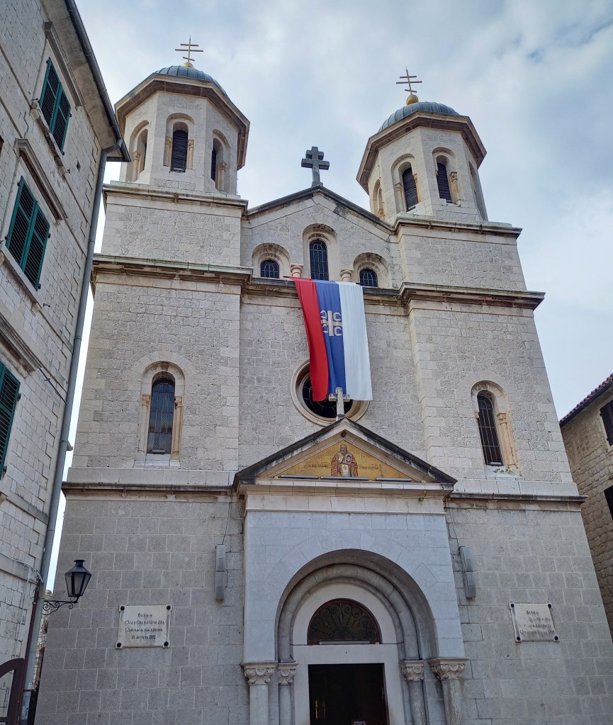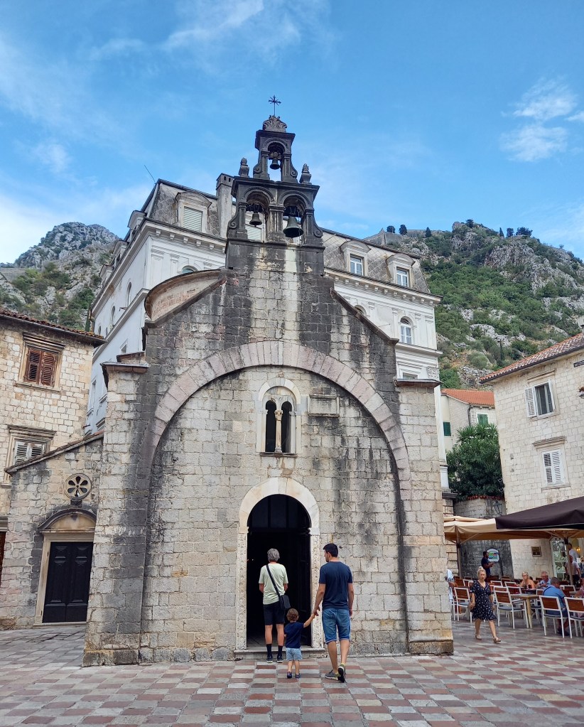 Questa chiesa era inizialmente di culto cattolico fino al XVII secolo, quando a causa delle continue guerre e per il grande afflusso di popolazioni dall’interno verso Cattaro essa fu data in uso anche ai fedeli ortodossi. Dall’anno 1657 al 1812 fu caratterizzata dalla presenza di due altari, uno cattolico e uno ortodosso, posti fianco a fianco, con le due comunità che si alternavano nelle funzioni. In seguito l’edificio fu donato alla chiesa ortodossa.