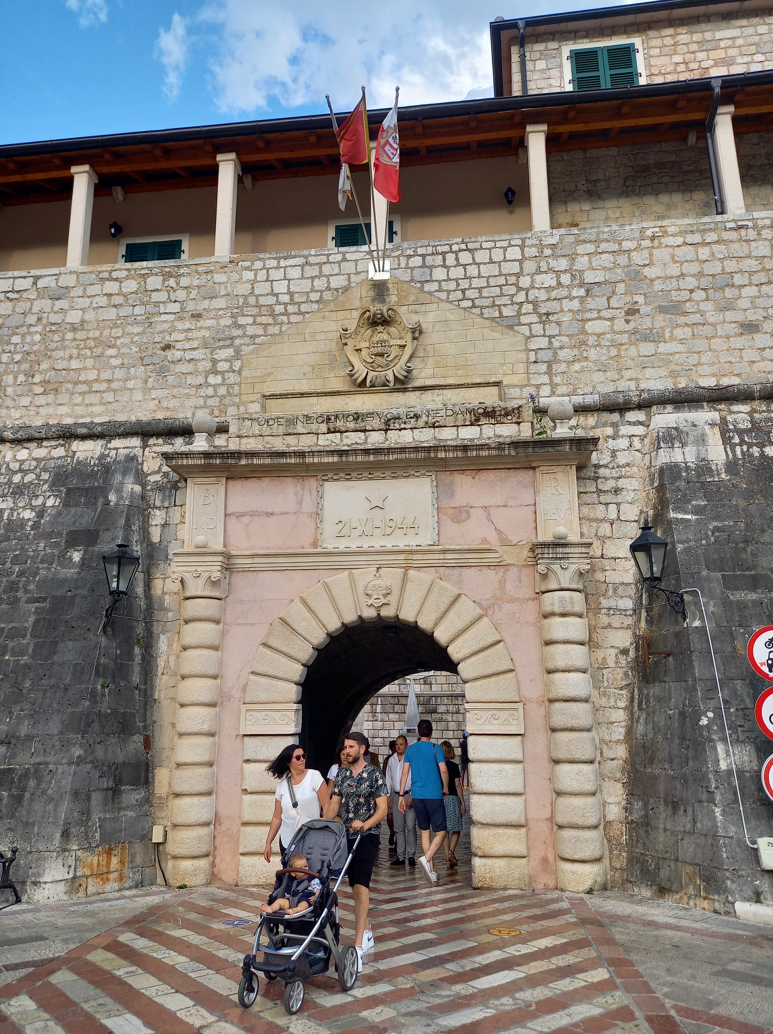 Concludiamo il giro con Saška uscendo dalla città vecchia dalla porta principale, che guarda il mare. Sulla porta è scolpita la data di liberazione della città dai nazisti (21/11/1944), sormontata da una stella, e una storica frase di Tito: Ciò che non è nostro non lo vogliamo, ciò che è nostro non lo diamo.