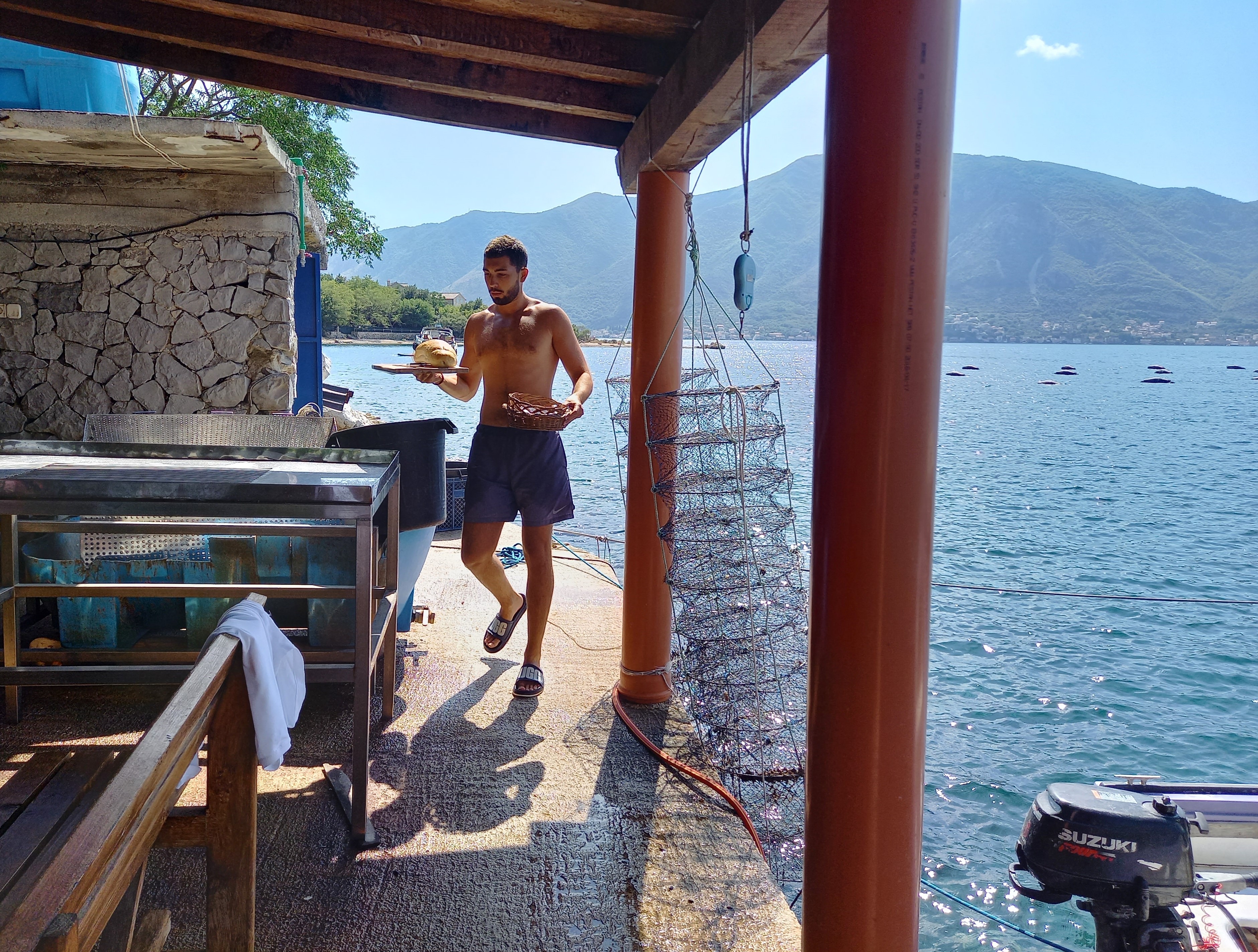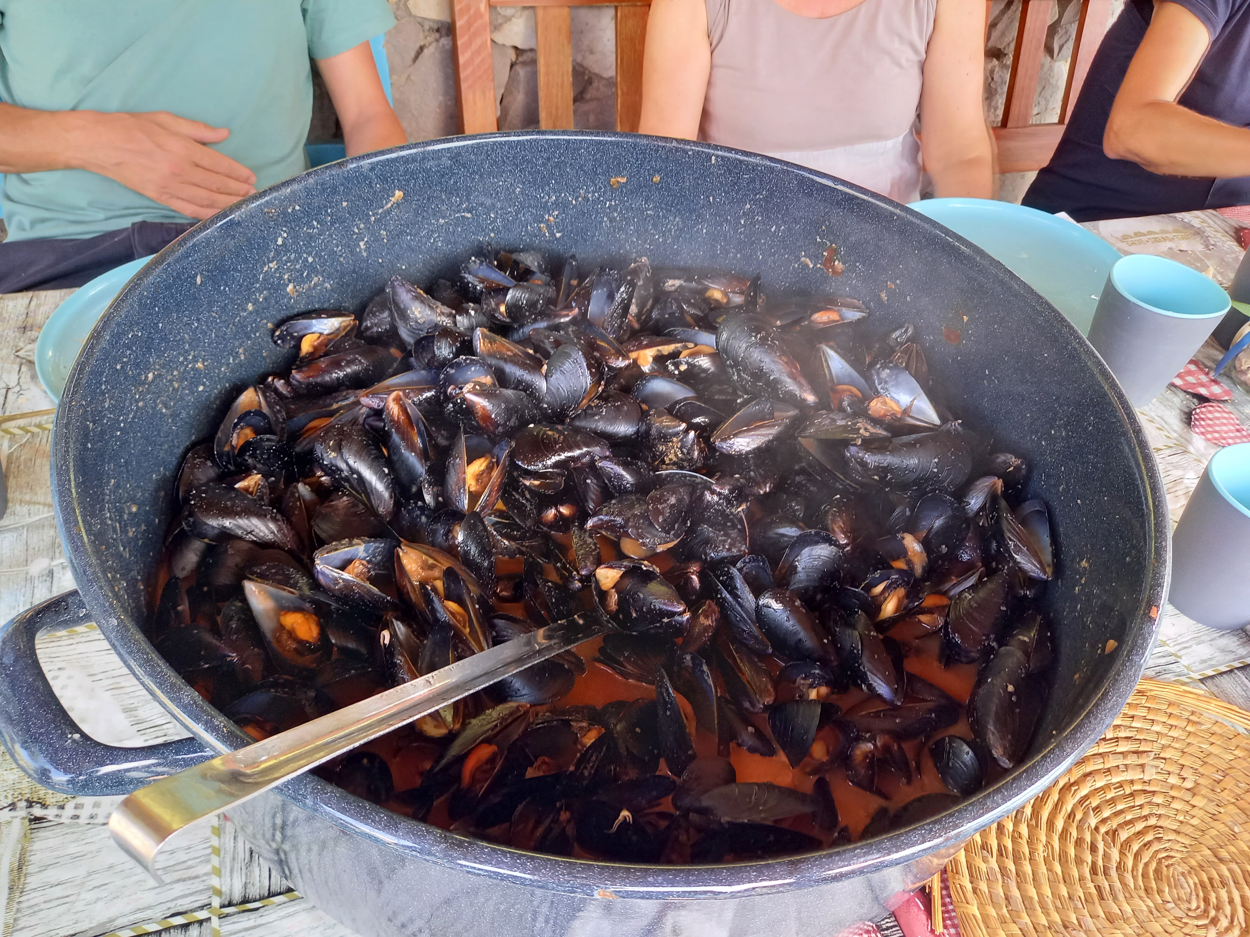 Noi, dopo tanta storia e cultura, abbiamo bisogno anche di un po’ di cultura… del cibo e quindi andiamo all’appuntamento con Luka, che ci ospita nel suo piccolo allevamento biologico di ostriche e cozze per un lauto pranzo, ovviamente a base di frutti di mare. C’è tempo per un velocissimo bagnetto, per chi ne ha voglia, e poi ci buttiamo avidamente sui molluschi. Non senza una spiegazione da parte di Luka, che ci aiuta a comprenderne meglio la vita, prima di addentarli. Ad esempio, lo sapevate che le cozze femmine sono di color arancio, mentre i maschi sono bianchi?
