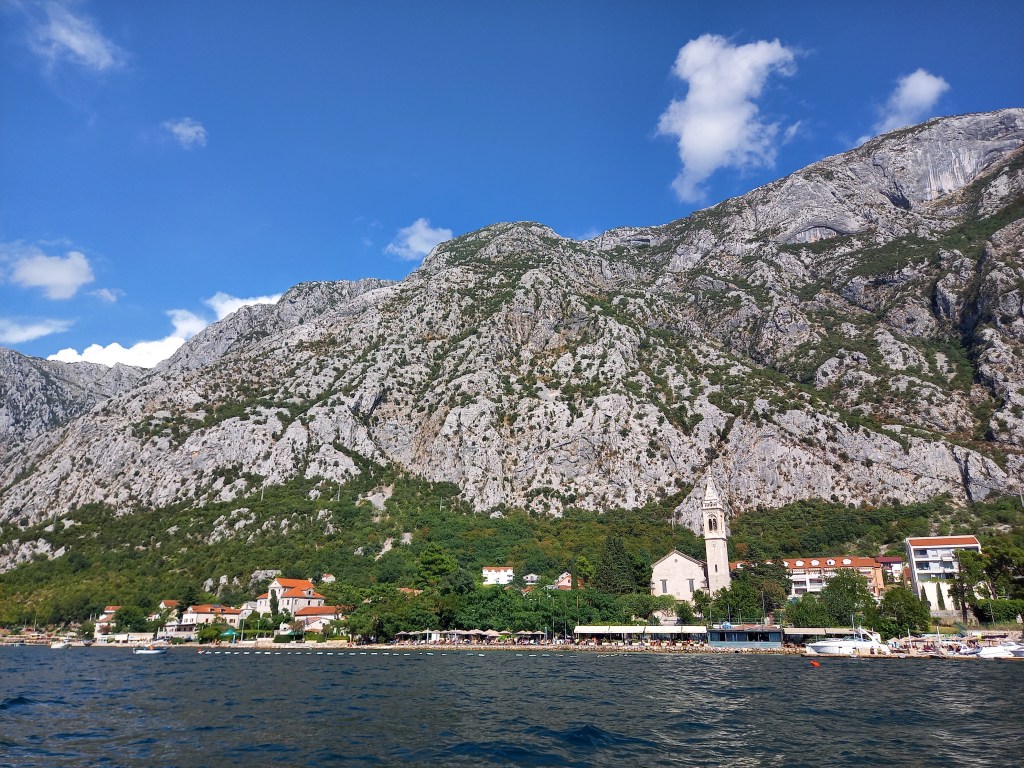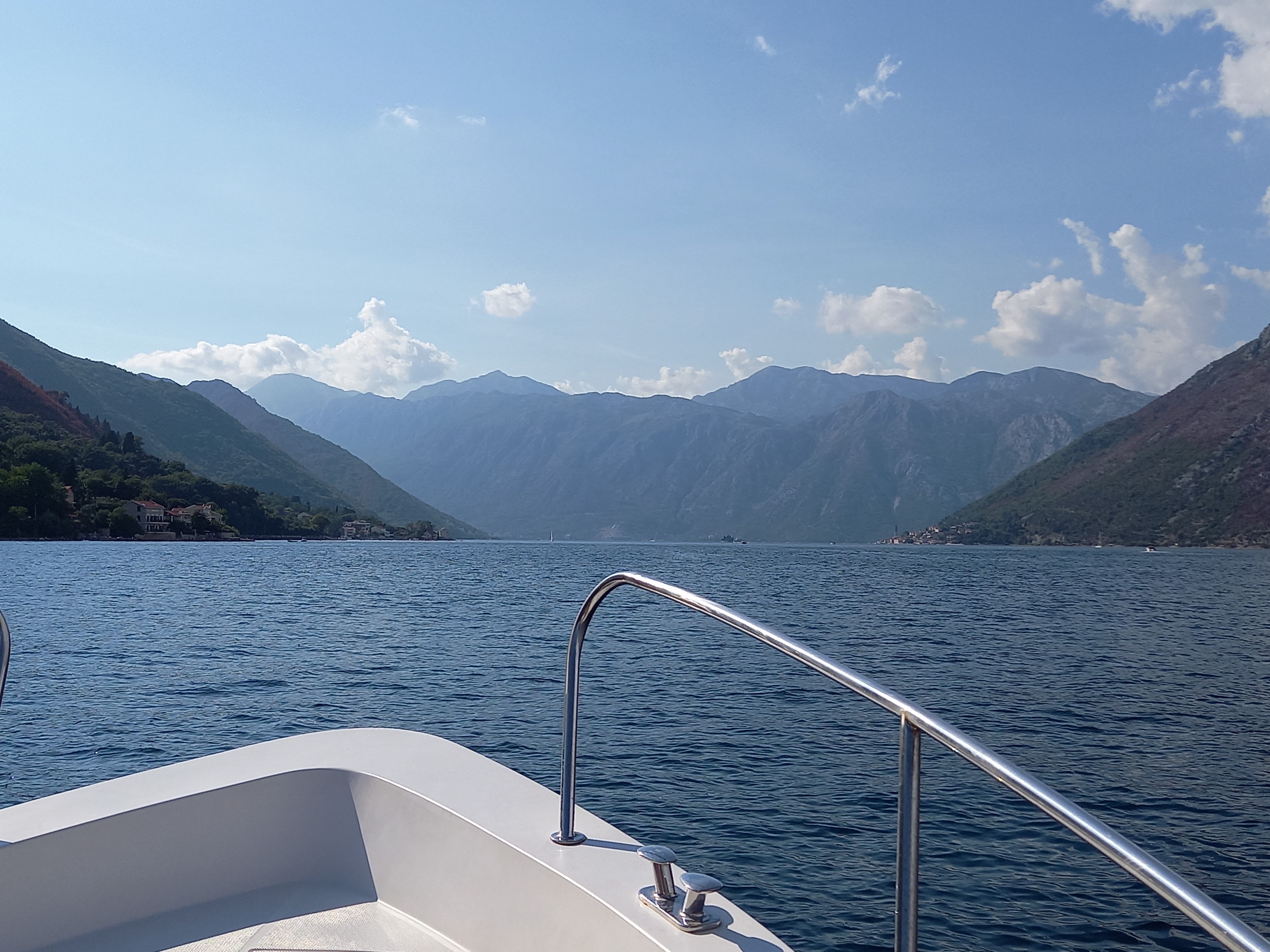 Satolli e soddisfatti, ripartiamo per la navigazione. Il nostro capitano, subito soprannominato Capitan Findus per via della lunga barba bianca – ma decisamente più aitante e piacione del vecchietto della pubblicità della nostra infanzia –, ci porterà un po’ a zonzo per le Bocche, per permetterci di guardare dal mare le cittadine, con i loro palazzi e i loro campanili, e le spettacolari sponde di questi fiordi del Mediterraneo. Ci offre un bicchierino di rakija (non poteva mancare) e si parte.