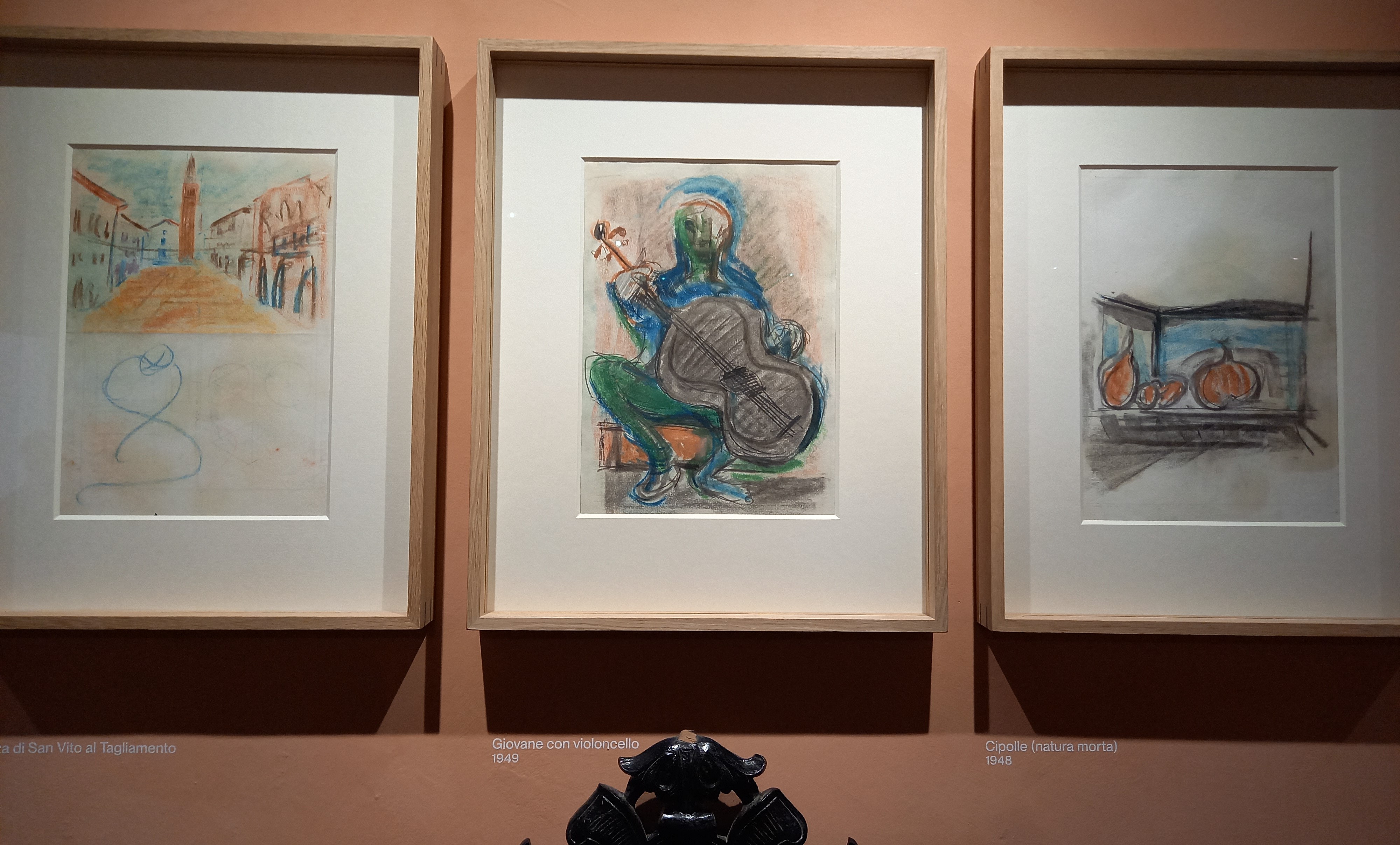 E si finisce con i dipinti e i disegni del Pasolini artista del periodo casarsese che, ancora incerto sulla priorità della poesia, dipinge paesaggi con casolari o libere vedute campestri, a olio, secondo ricette della pittura impressionista che il pittore Federico De Rocco, entrato nella cerchia degli amici più cari, ha messo a punto per lui. Come un vero vedutista, Pier Paolo è uscito spesso di casa con il cavalletto e la cassetta dei colori legati alla canna della bicicletta e, dopo essersi inoltrato nei campi che circondano il paese, si è fermato in qualche luogo solitario, dove ha piazzato la tela bianca – tela da sacco inchiodata da lui stesso al telaio – ai bordi dei campi coltivati circondati da boschetti di robinia, oppure davanti a stalle e casolari. Alla levità lirica della pittura italiana del Novecento cui manifestamente si ispirava, Pasolini aveva intuito di dover aggiungere la qualità forte della luce della Bassa friulana tra contrasti e accensioni dilaganti.