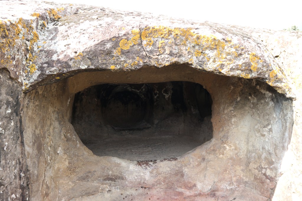Eh già, perché un tour che si chiama “La via delle Janas” (forse non l’ho ancora detto? Be’, ve lo dico adesso…) non poteva che cominciare da qui, da questo comune adagiato tra l’altipiano della Giara e il Monte Arci, dove si trova la Necropoli prenuragica di Is Forrus con le sue Domus de Janas (Case delle Fate), considerate tra le più spettacolari dell’isola. Piccola nota a margine: Domus è sardo ma è anche latino (dai, questa è facile). Il sardo è un po’ latino, nel senso che ha una fortissima influenza latina: molti termini sono latino puro, dai sostantivi come appunto domus alle voci verbali. C’è anche molto spagnolo, eredità della lunga dominazione: le nostre mariposas ne sono un esempio, come ce ne sarebbero molti altri. Ma non divaghiamo…