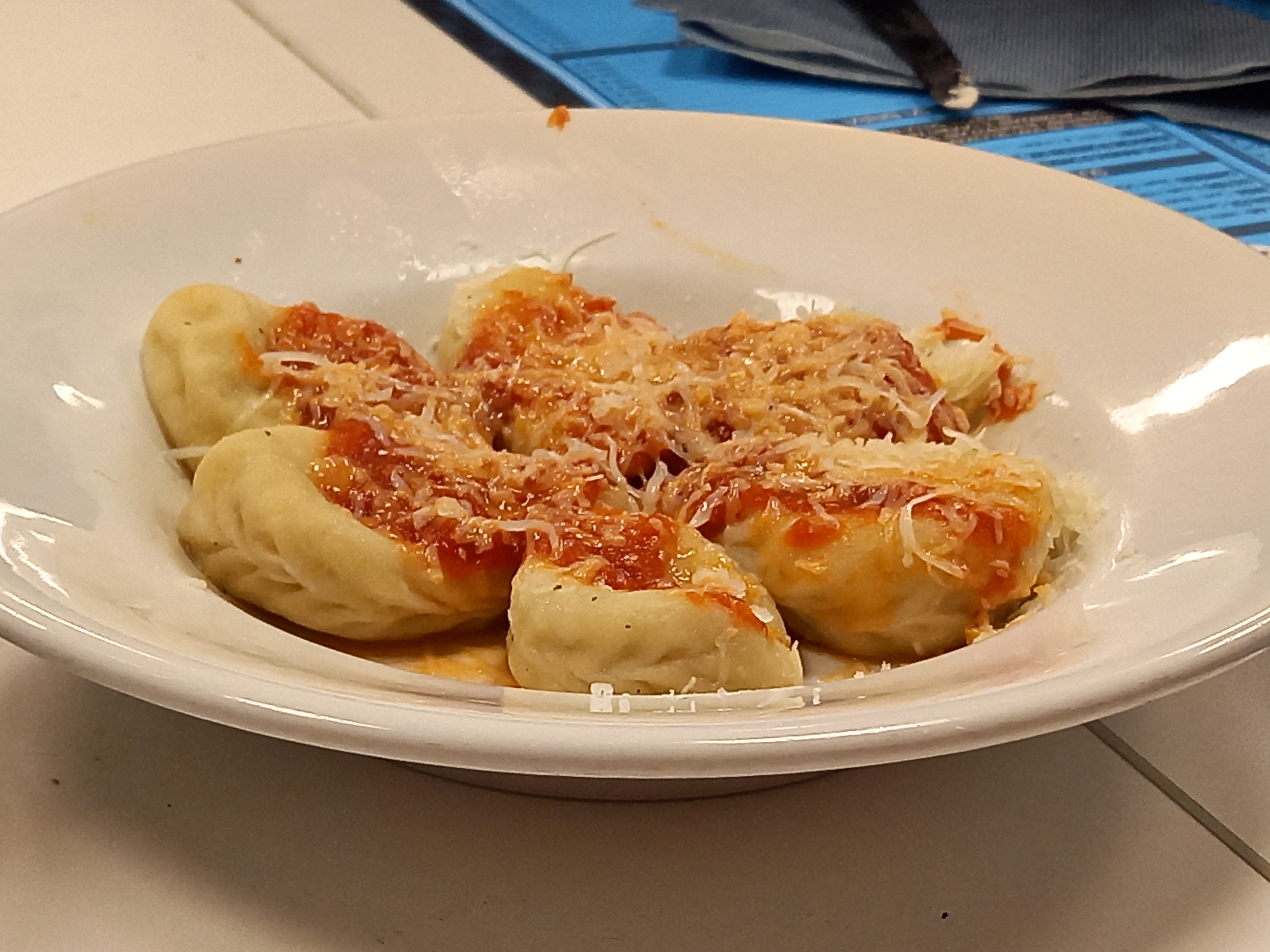 Per ora, dopo una doccia veloce, si va a cena da Kòru, una agri-risto-pizzeria che offre un menù molto vario. Per noi hanno preparato dei ricchi taglieri di antipasti con salumi e formaggi, poi un bel piatto di culurgiones al sugo. I culurgiones, per quei pochi incolti che non lo sapessero, sono i tipici ravioli sardi con ripieno di pecorino, patate e menta. Qui a Sadali nel mese di agosto c’è la sagra dei culurgiones, quindi non vi sto a dire che il livello è altissimo… ma poi abbiamo anche – omaggio della casa – un’ottima pizza da assaggiare, già divisa in otto fette. E per finire, un tocco di dolcezza con le seadas (la seada è un raviolone tondo ripieno di pecorino e immerso nel miele – o con lo zucchero, ma a me piace così, col miele) e un bicchierino della staffa a scelta: amaro, mirto o filu ‘e ferru (l’acquavite sarda).