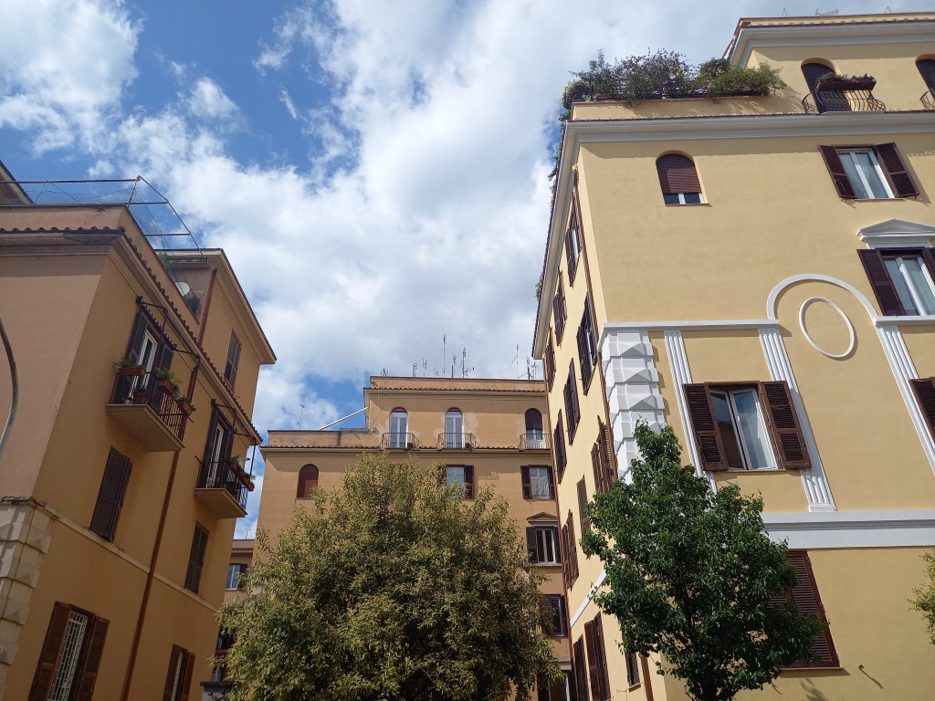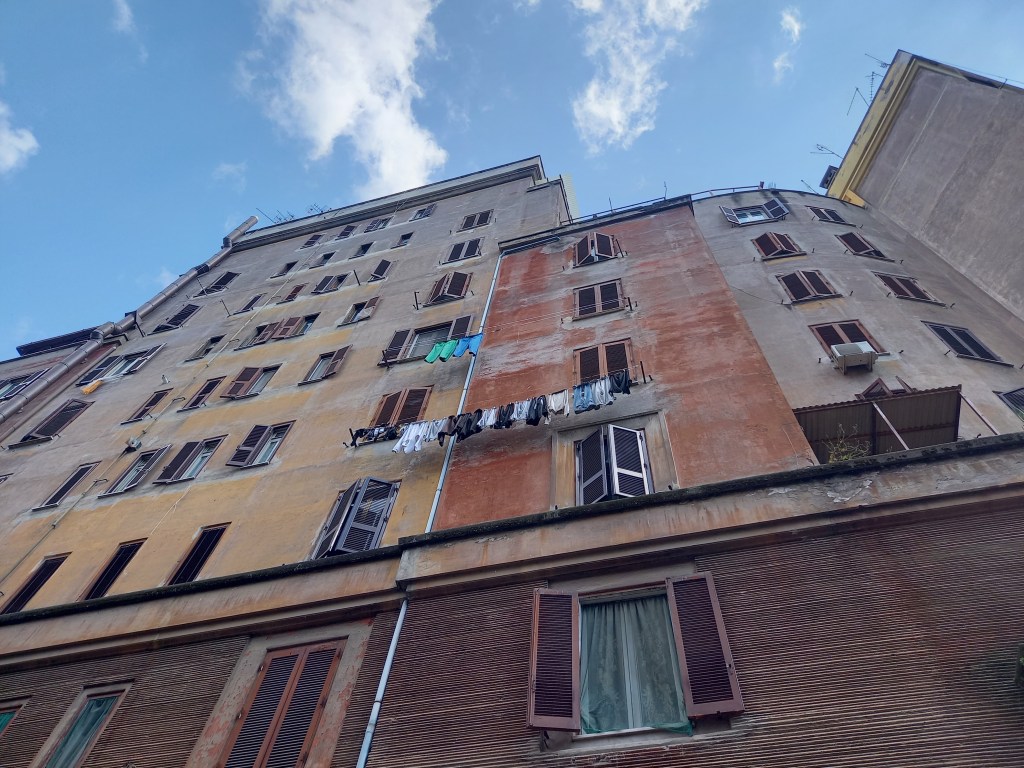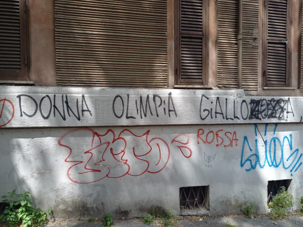 Dopo questo pranzo lungo, conviviale e molto piacevole, e dopo una bella foto di gruppo davanti all’osteria, Silvio ci accompagna in giro per il quartiere. Partiamo dalle case popolari di Donna Olimpia, i cosiddetti “grattacieli” dove sono stati girati diversi film (“Poveri ma belli”, per citarne soltanto uno).