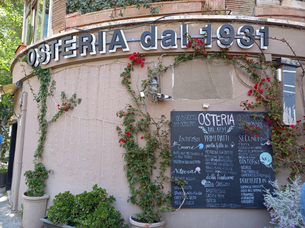 Per questo si sono sentiti, in questi giorni, e Silvio, sapendo che saremmo arrivati verso mezzogiorno, ci ha invitati a pranzare con lui in una storica osteria qui a Donna Olimpia. Invito che, naturalmente, abbiamo accettato con entusiasmo.