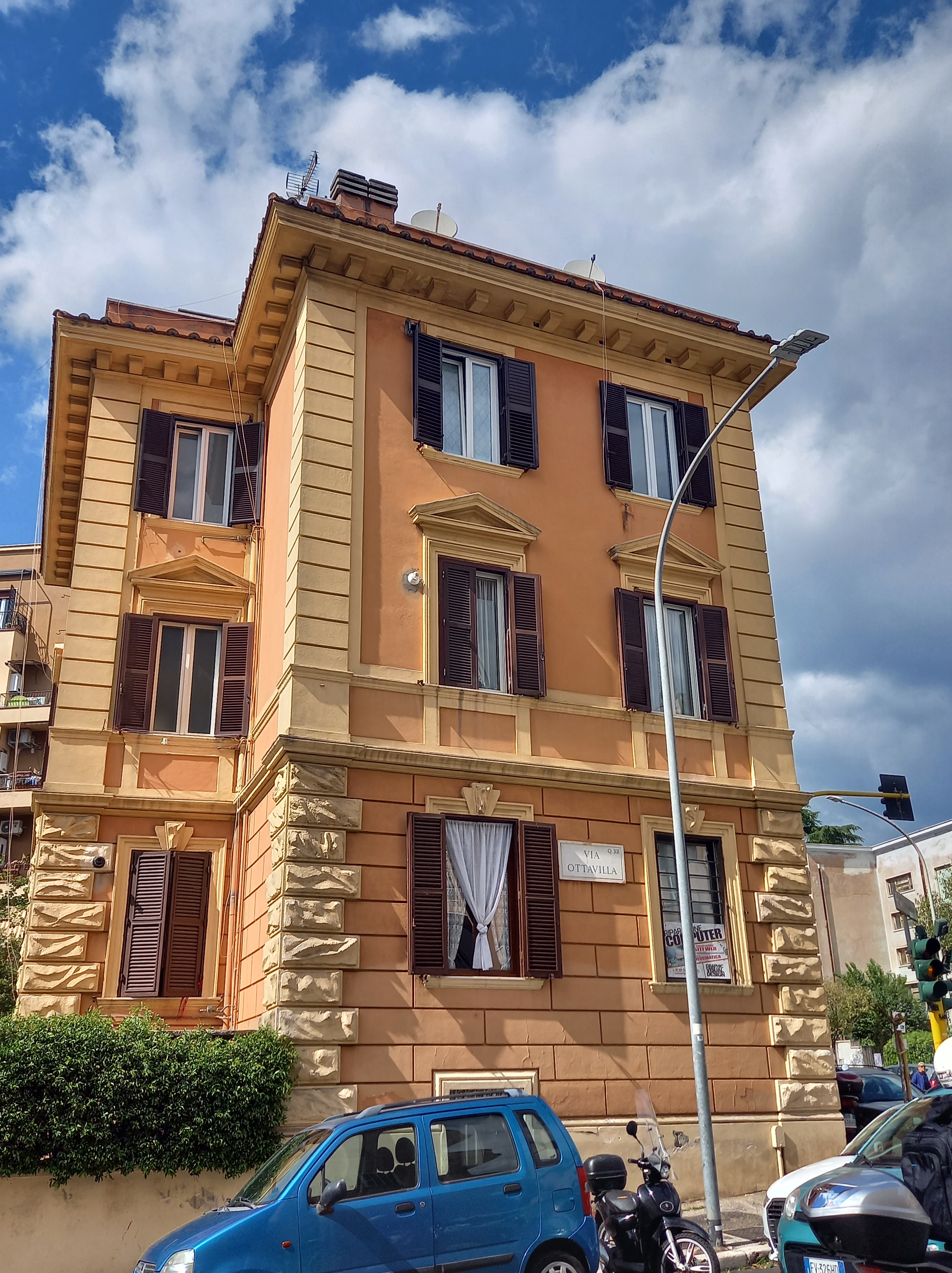Pasolini qui cercava, nel sottoproletariato romano, quella stessa purezza che prima aveva cercato nei contadini friulani, nel mito della campagna. E del resto anche qui all’epoca era “quasi” campagna. Silvio ricorda che lui e i suoi amici, quando uscivano dal quartiere, dicevamo “annamo a Roma”, come se questa non fosse Roma. E in un certo senso non lo era, loro avevano fortissima la percezione di essere in un luogo diverso e lontano, di fare soprattutto una vita diversa da chi abitava “a Roma”. Anche se Monteverde vecchio era qui, attaccato a Donna Olimpia. Lo capiamo bene percorrendo i pochi passi che ci separano dalla prima casa dove ha vissuto Pasolini a Monteverde, in via Fonteiana 86. Dove, incredibile a dirsi, abitava anche Carlo Emilio Gadda, l’autore di “Quer pasticciaccio brutto de via Merulana”. Oggi da fuori niente identifica questo palazzo, un parallelepipedo senza particolari segni di estro architettonico, eppure dall’ingresso spazioso, luminoso. È proprio nell’atrio che i proprietari del palazzo, in occasione del trentesimo anniversario della scomparsa dello scrittore, nel novembre del 2005, hanno fissato una targa di marmo; serve a ricordare che dal 1955 al 1959 Pier Paolo Pasolini ha abitato qui. Seguono i versi “Com’era nuovo nel sole Monteverde Vecchio!”. Per poterla vedere bisogna avere fortuna, deve entrare o uscire qualcuno che ti apra il portone. L’appartamento dove vivevano Pier Paolo e la madre Susanna aveva appena due stanze, cucina, bagno e un balcone stretto che s’affaccia su via Innocenzo X.