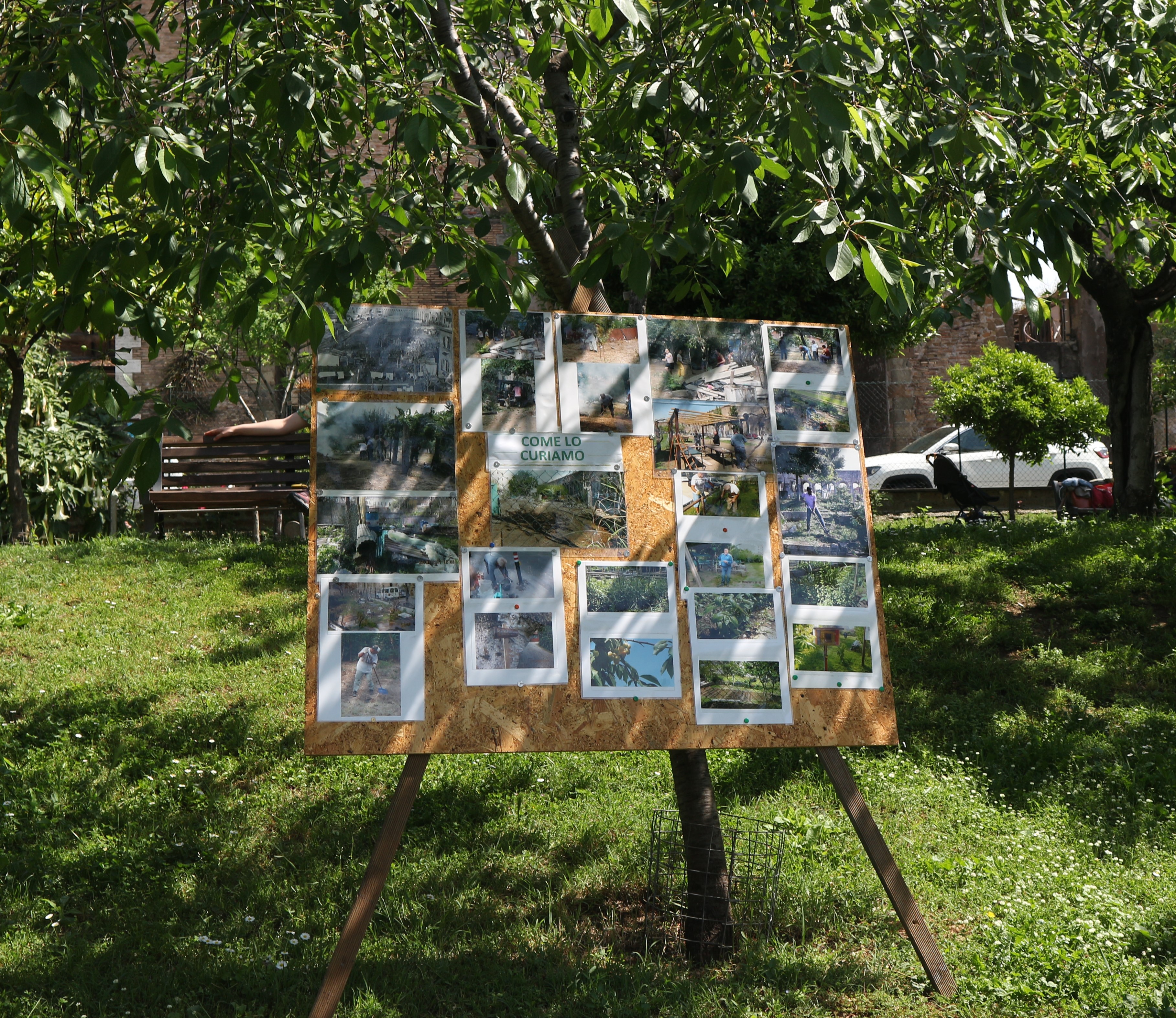 Tutto questo ce lo ha raccontato Gabriella, che conosce bene la storia e diversi componenti del comitato, ma ce lo ha confermato anche uno dei rappresentanti del comitato stesso, che vedendoci qui con lei ha organizzato in quattro e quattr’otto una piccola mostra fotografica qui nel giardino, andando a recuperare i pannelli che sono già stati usati per altre iniziative di comunicazione simili.