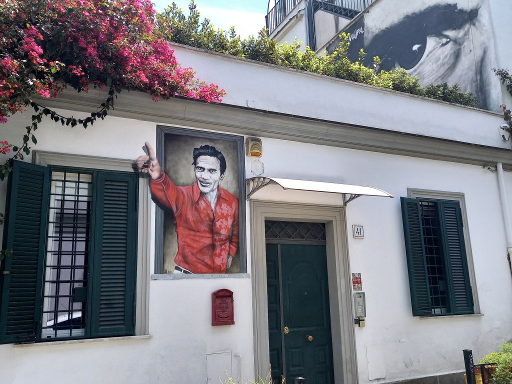 Percorrendo Via Fanfulla da Lodi, si può vedere il vicolo laterale dove c’era nel film la casa di Accattone, e anche la porta di quello che era il “bar” frequentato da lui e dai suoi amici. La via è poi punteggiata di murales pasoliniani: un trompe l’oeil di lui che, con una camicia rossa a fiori, spunta da una finestra, il suo occhio e, dall’altro lato della strada, alla stessa altezza, la “Piccola Maria”, che raffigura Margherita Caruso che interpreta la Madonna da giovane nel Vangelo secondo Matteo (quest’ultimo disegnato dal romano Mr Klevra).