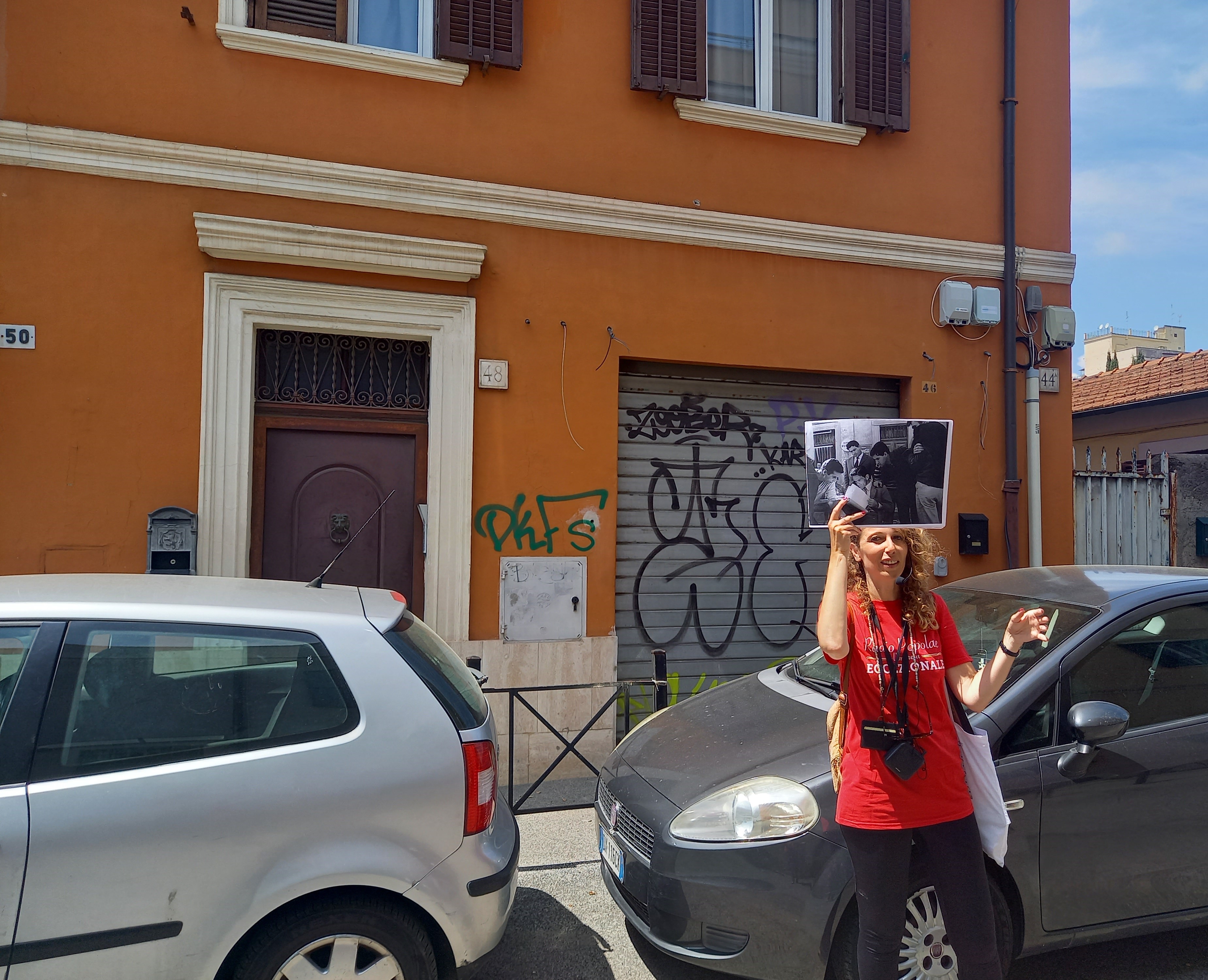 Le prossime tappe saranno tutte nei luoghi di Accattone, e quindi Gabriella ci racconta come l’idea di realizzare il film cominciò a prendere forma. Tutto nasce da alcuni racconti che Pasolini ascolta in un’osteria a Tor Pignattara, poco distante da qui. È lì che incontra, all’inizio degli anni ’50, Sergio Citti, quello che poi definirà “il mio lessico romanesco vivente”. Sergio Citti era un imbianchino della Marranella di 19 anni, che poi presenterà a Pasolini anche il fratello Franco, di due anni più piccolo, che una decina d’anni dopo sarà il protagonista del film. E con lui anche tanti altri ragazzi del Pigneto e di Tor Pignattara, ai quali Pasolini si ispirerà per i personaggi del film. Accattone, questo ragazzo che ritornava frequentemente nei discorsi di osteria, faceva il magnaccia ed era sparito a un certo punto dalla circolazione, senza che si sapesse più niente di lui.