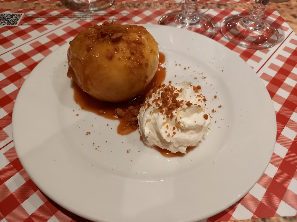 Fatta quest’ultima… fatica, ci mettiamo in cerca di un posticino per mangiare qualcosa. Non siamo più in Bretagna, ma le galettes si fanno anche qui, e allora ci sembra un’ottima soluzione per una cenetta veloce ma gustosa. Ci concediamo anche un dolce, nel mio caso una mela al forno con mousse di sidro e cannella (specialità normanna).