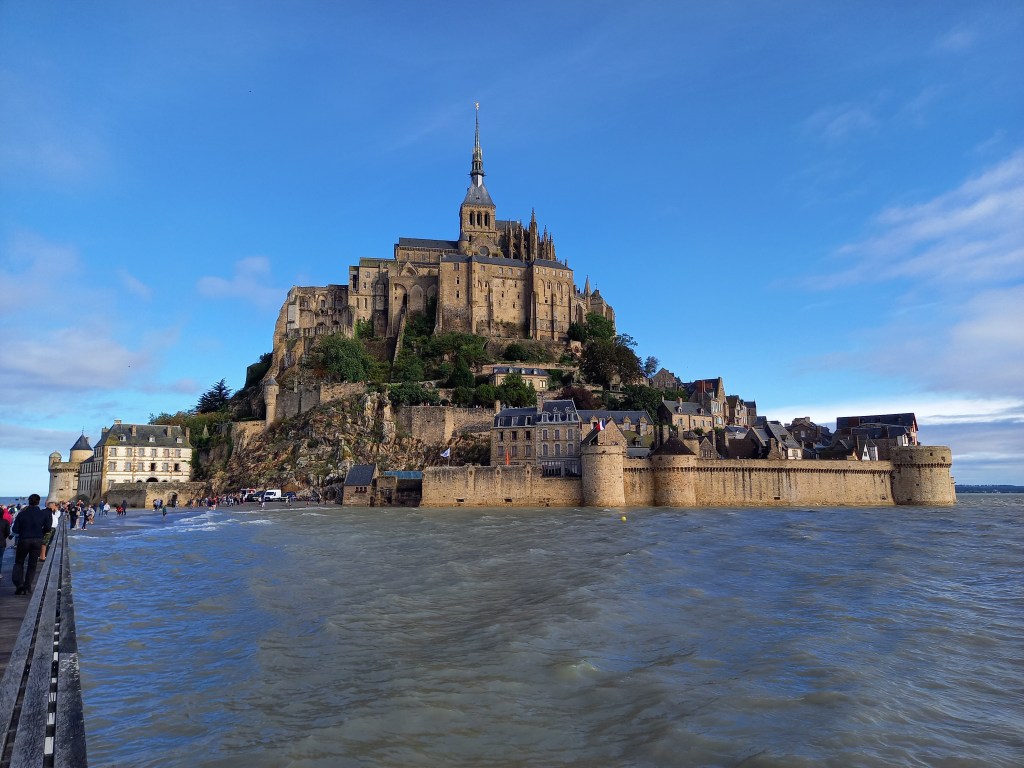 Il Mont-Saint-Michel e la sua baia sono il secondo sito turistico più visitato di Francia. L’intero sito è inserito nella lista dei monumenti storici dal 1862, mentre il comune e la baia fanno parte del Patrimonio mondiale dell’umanità dell’UNESCO dal 1979. Il comune è tra i più piccoli al mondo, pensate che ci vivono oggi solo 33 abitanti. Sull’isolotto roccioso sorge la celebre abbazia medioevale. A 170 metri al di sopra del livello del mare, in cima alla guglia della chiesa abbaziale, si trova la statua di san Michele in onore del quale fu costruito il santuario.