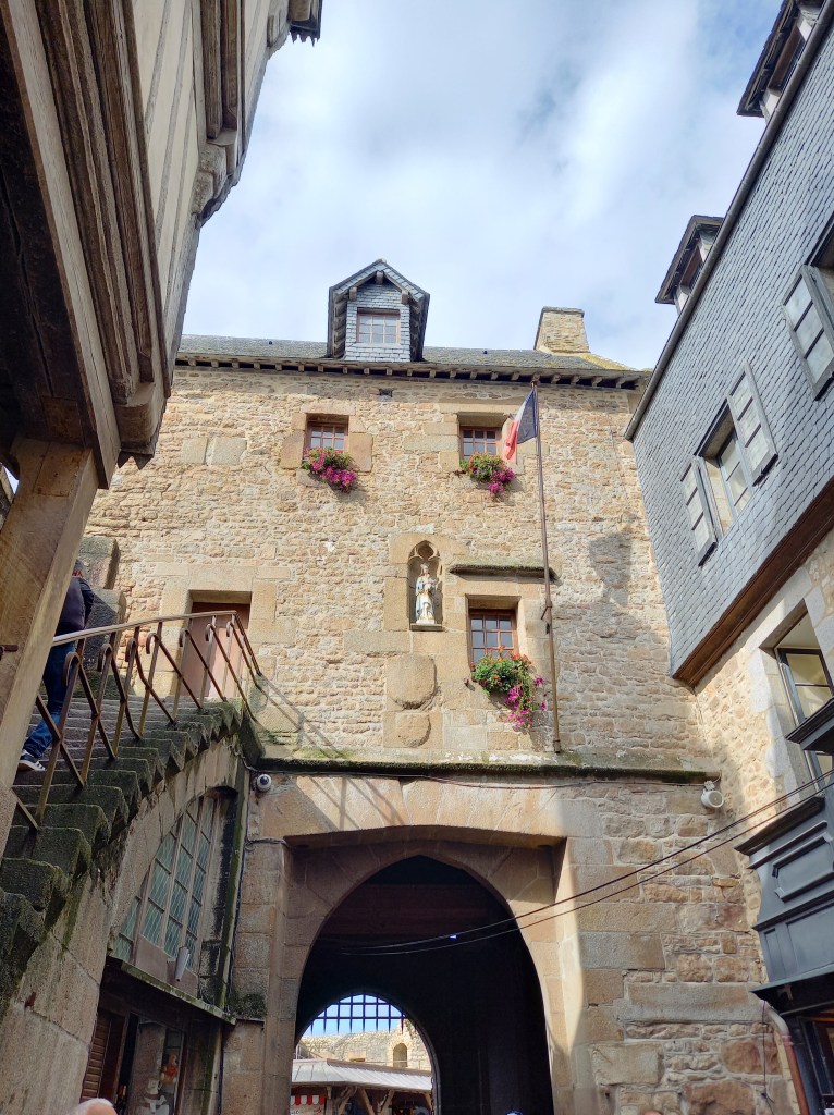 Ed eccoci a quella che sarà l’ultima tappa del nostro viaggio: Mont Saint-Michel. Siamo arrivati qui con un altro Flixbus da Rennes, circa un’ora e mezza di viaggio. Qui non siamo più in Bretagna, questa è già Normandia, anche se siamo molto vicini al confine tra le due regioni. Valeva la pena, però, di… sconfinare rispetto a quella che è la “ragione sociale” del viaggio, perché Mont Saint-Michel è uno di quei posti che almeno una volta nella vita devi vedere. E lo si capisce anche dalla quantità di turisti che ci sono, una quantità mai vista finora in questo viaggio se non un po’ a Saint-Malo, ma comunque ben lontani da questi livelli. Ci siamo sistemati in un hotel che si chiama Saint Aubert (scopriremo che è un santo molto importante da queste parti) e che si trova nella parte “nuova” di questa cittadina, in località La Caserne.