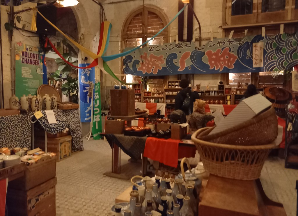 È il posto perfetto per noi, anche perché in questi giorni c’è un mercatino di artigianato tutto giapponese che… puntiamo subito come l’ultima occasione per comprare un regalino a Viola. Stiamo meditando su questo già da un paio di giorni ma i ritmi fin qui sono stati talmente serrati che davvero non c’è stato il tempo. Sappiamo che a lei sarebbe piaciuta una bella scodellina per il sidro; be’, qui di scodelline ce ne sono a bizzeffe: sarebbero per il riso, ma in fondo uno ne può fare l’uso che crede, no? Ma non basta: ci sono anche dei bellissimi kimono, e così – con un po’ di fatica – la convinciamo a scegliersene uno da portare a casa. Sarà il nostro regalo, da accompagnare con un bigliettino del quale mi sono occupato io… ho questa piccola tradizione, che cerco sempre di rispettare, per cui alla fine di ogni viaggio con le Mariposas le ringrazio con due righe in rima, una specie di poesiola stupidella che però in genere a loro piace perché sono delle anime sensibili. Ebbene, ecco quella di questa volta (ormai la quinta); mi dispiace, ma tocca anche a voi dovervela sorbire: