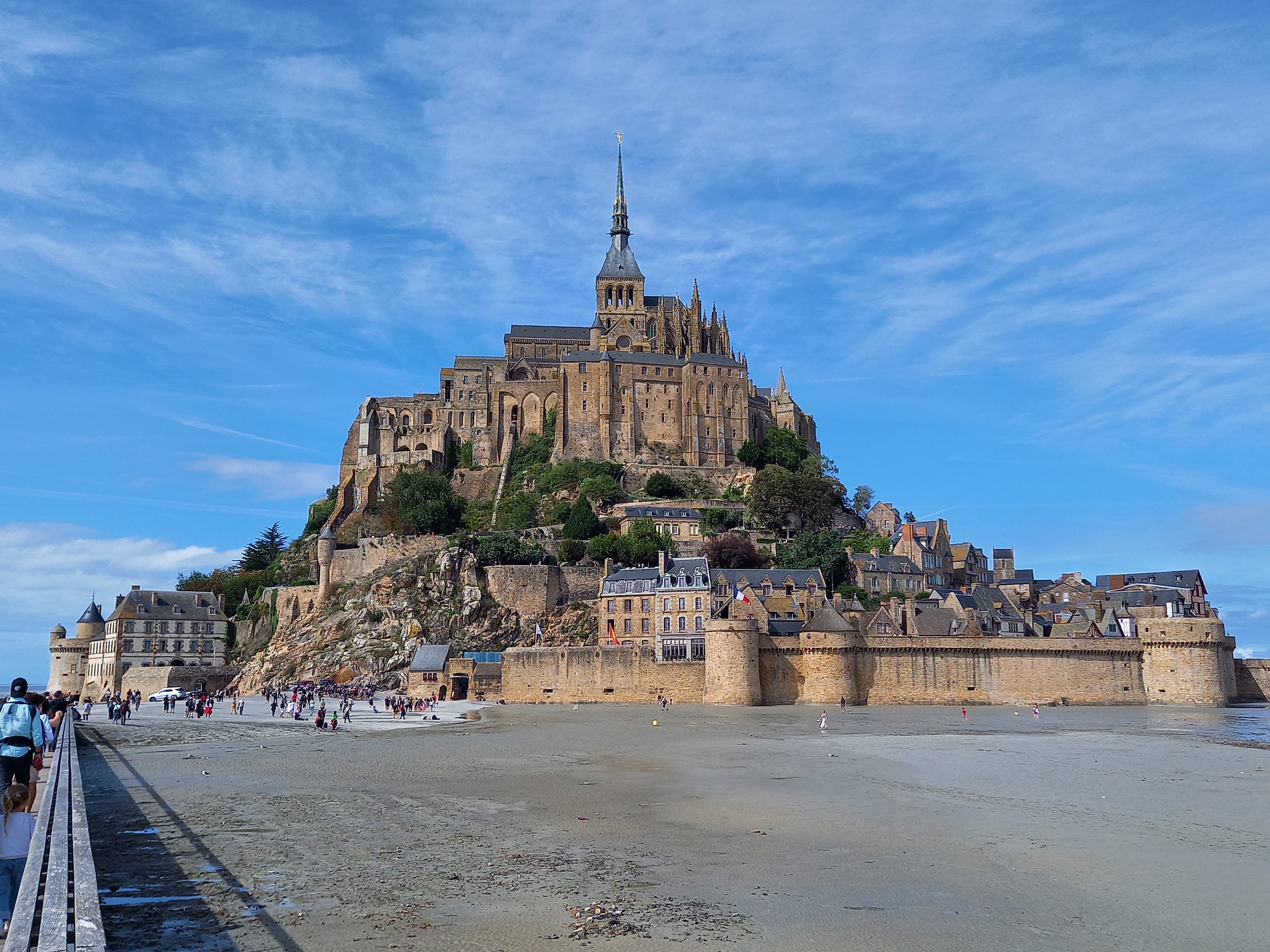 Il Mont-Saint-Michel e la sua baia sono il secondo sito turistico più visitato di Francia. L’intero sito è inserito nella lista dei monumenti storici dal 1862, mentre il comune e la baia fanno parte del Patrimonio mondiale dell’umanità dell’UNESCO dal 1979. Il comune è tra i più piccoli al mondo, pensate che ci vivono oggi solo 33 abitanti. Sull’isolotto roccioso sorge la celebre abbazia medioevale. A 170 metri al di sopra del livello del mare, in cima alla guglia della chiesa abbaziale, si trova la statua di san Michele in onore del quale fu costruito il santuario.