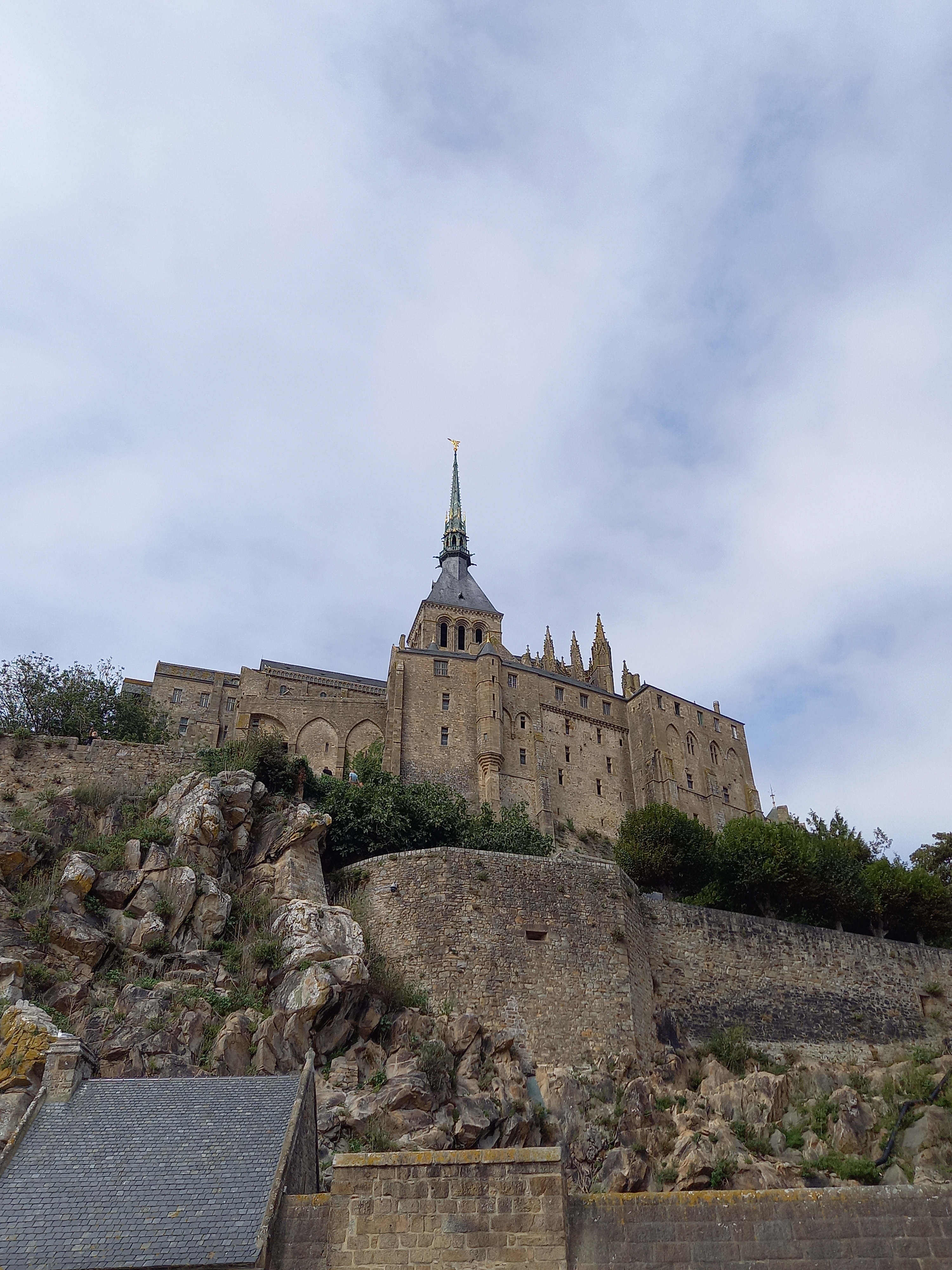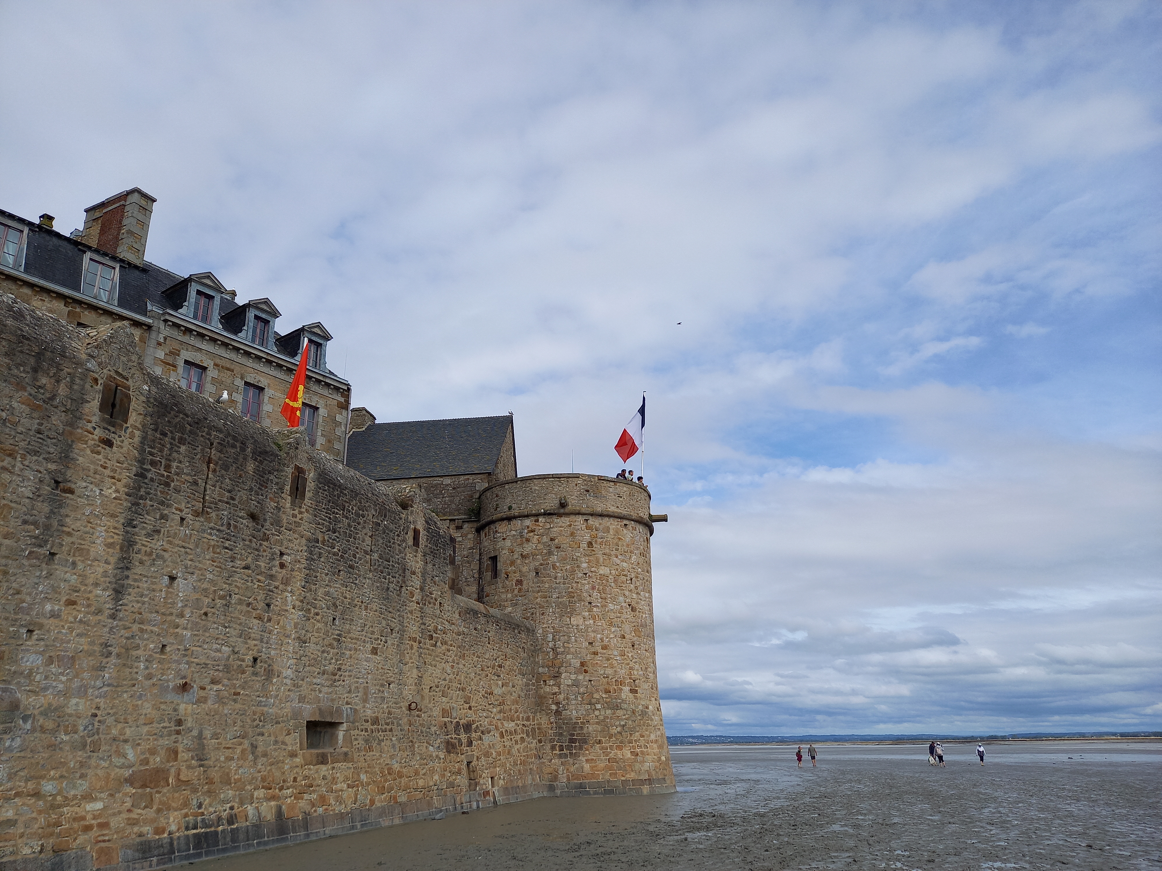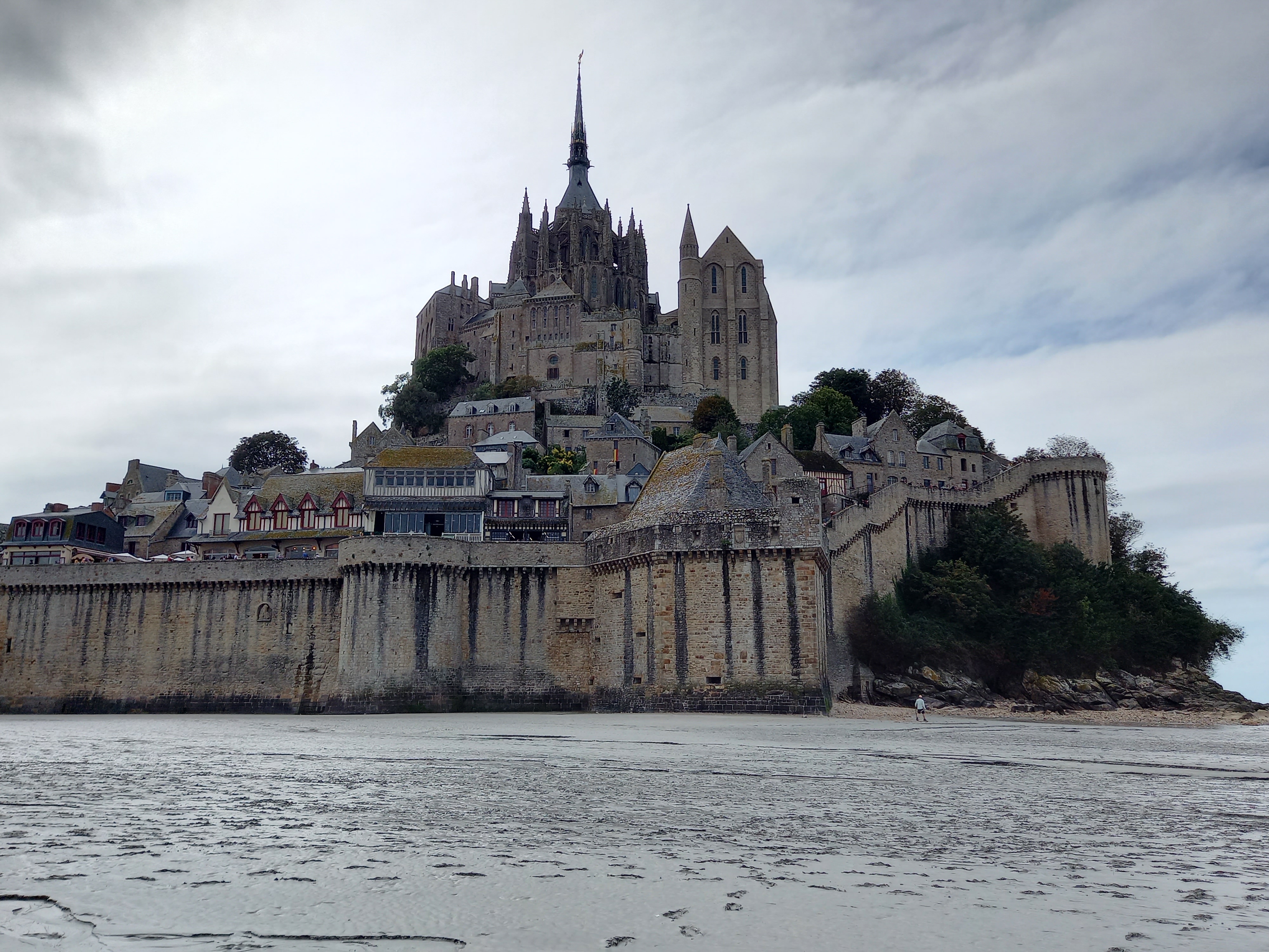 Ed eccoci a quella che sarà l’ultima tappa del nostro viaggio: Mont Saint-Michel. Siamo arrivati qui con un altro Flixbus da Rennes, circa un’ora e mezza di viaggio. Qui non siamo più in Bretagna, questa è già Normandia, anche se siamo molto vicini al confine tra le due regioni. Valeva la pena, però, di… sconfinare rispetto a quella che è la “ragione sociale” del viaggio, perché Mont Saint-Michel è uno di quei posti che almeno una volta nella vita devi vedere. E lo si capisce anche dalla quantità di turisti che ci sono, una quantità mai vista finora in questo viaggio se non un po’ a Saint-Malo, ma comunque ben lontani da questi livelli. Ci siamo sistemati in un hotel che si chiama Saint Aubert (scopriremo che è un santo molto importante da queste parti) e che si trova nella parte “nuova” di questa cittadina, in località La Caserne.