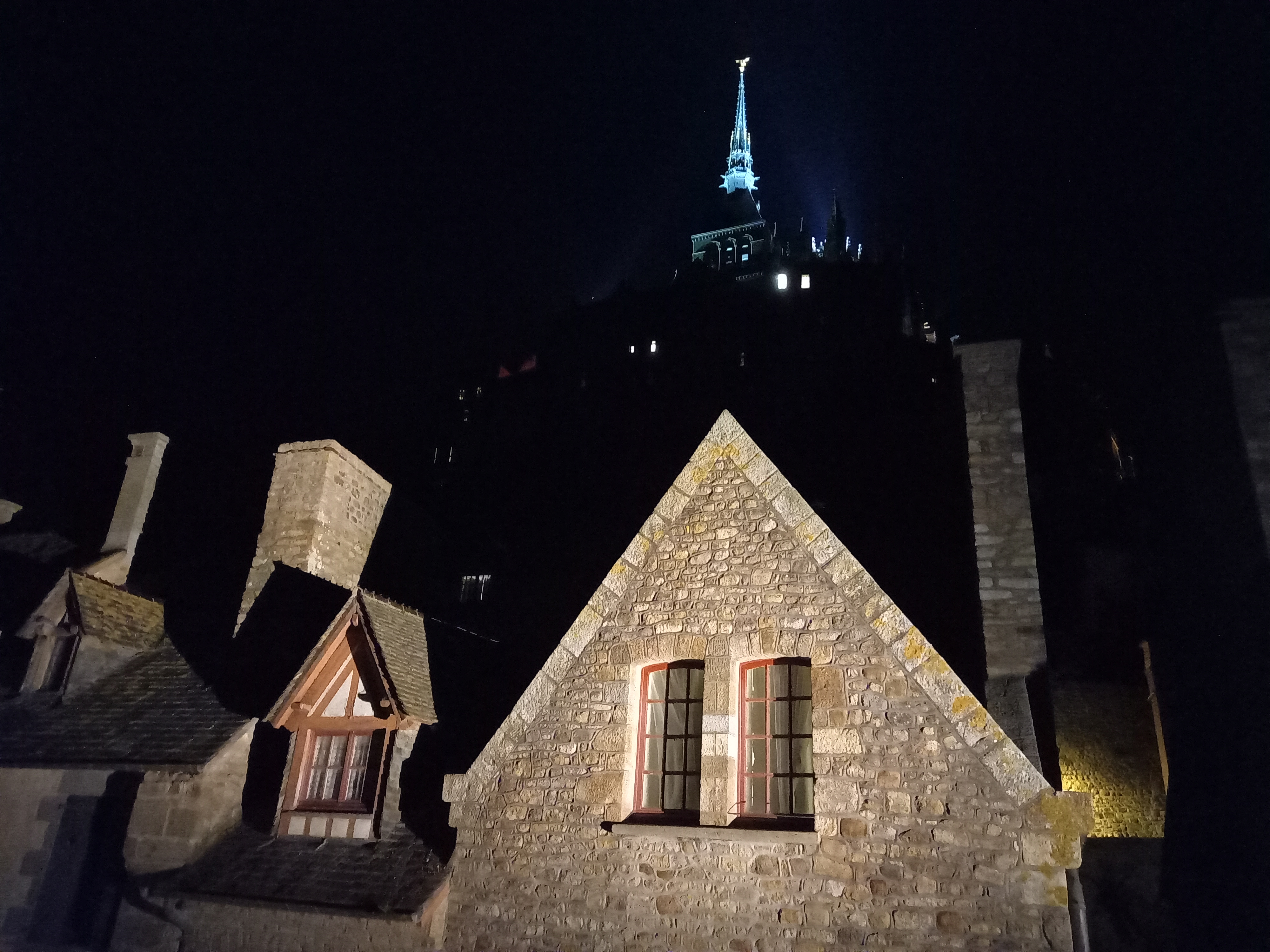 Nel frattempo, la marea sta iniziando a scendere. Dopo le 22.30, minuto più minuto meno, Mont Saint-Michel non sarà più un’isola e noi potremo prendere la navetta per tornare all’hotel. C’è il tempo di passeggiare un po’ nelle stradine ora quasi deserte, e di affacciarsi per godere del panorama della baia by night.