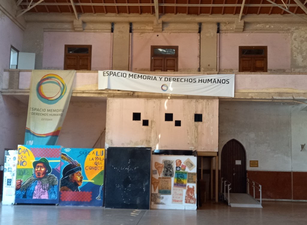 Ci spostiamo nel padiglione centrale, dove la nostra guida ci spiega che questo enorme complesso di 17 ettari di superficie apparteneva in origine alla città di Buenos Aires, che ne aveva concesso l’utilizzo alla Marina argentina. Ora però la Marina, dal 1998, ne è completamente uscita, e dal 2004 la ex ESMA è gestita da un ente pubblico appositamente creato, alla cui direzione partecipano il governo nazionale, quello della città e alcuni organismi per i diritti umani, tra cui le Madres e le Abuelas de Plaza de Mayo.
