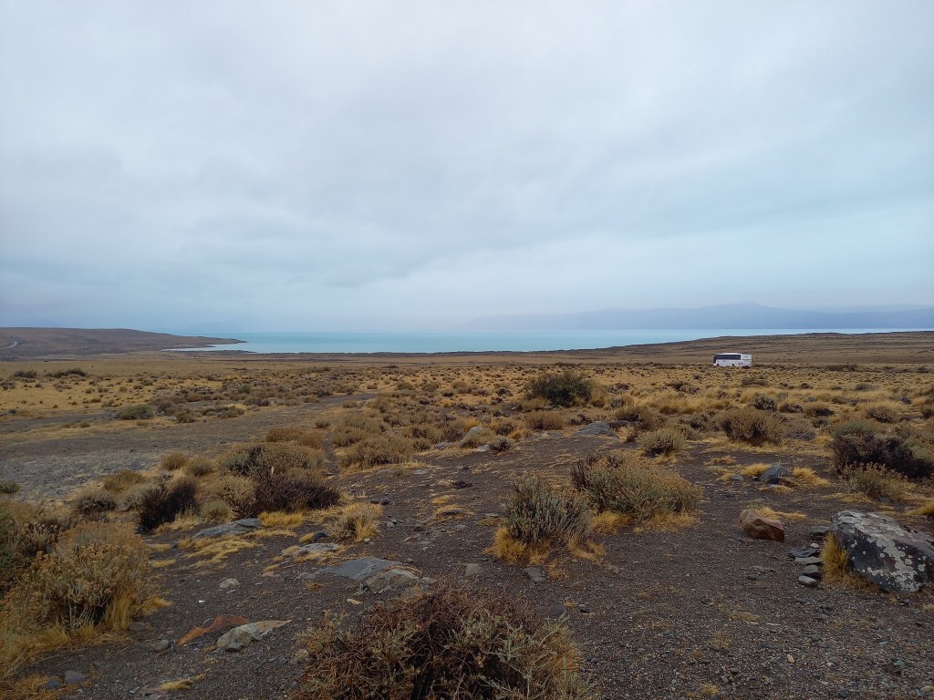 Effettivamente il giorno dopo il meteo non appare decisamente dei migliori, ma è l’unico giorno che abbiamo per vedere il ghiacciaio (il nostro programma è serrato) e perciò ovviamente si parte comunque. Abbiamo a disposizione un pullman con una guida che, mentre percorriamo gli 80 km di steppa patagonica che ci separano dal ghiacciaio, ci spiega un po’ cosa c’è da sapere sul Perito Moreno.